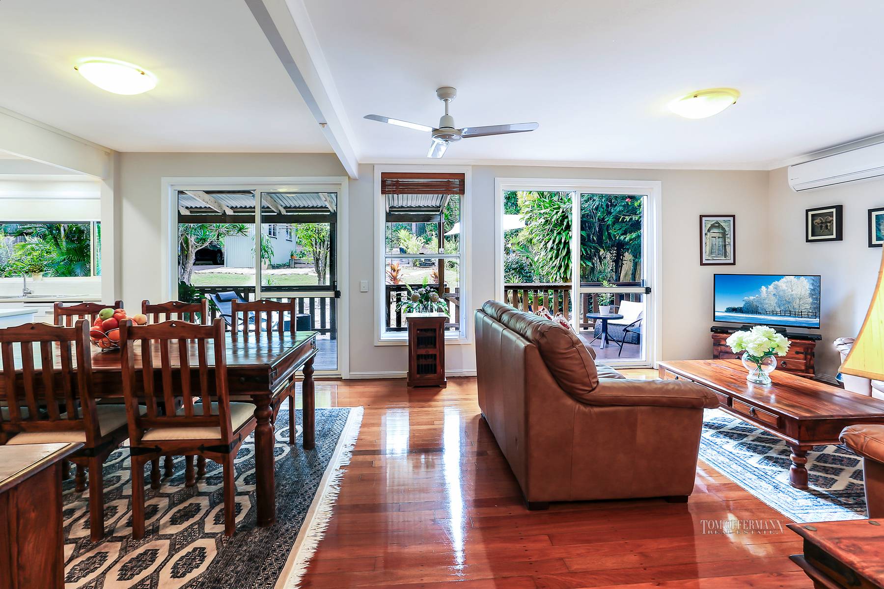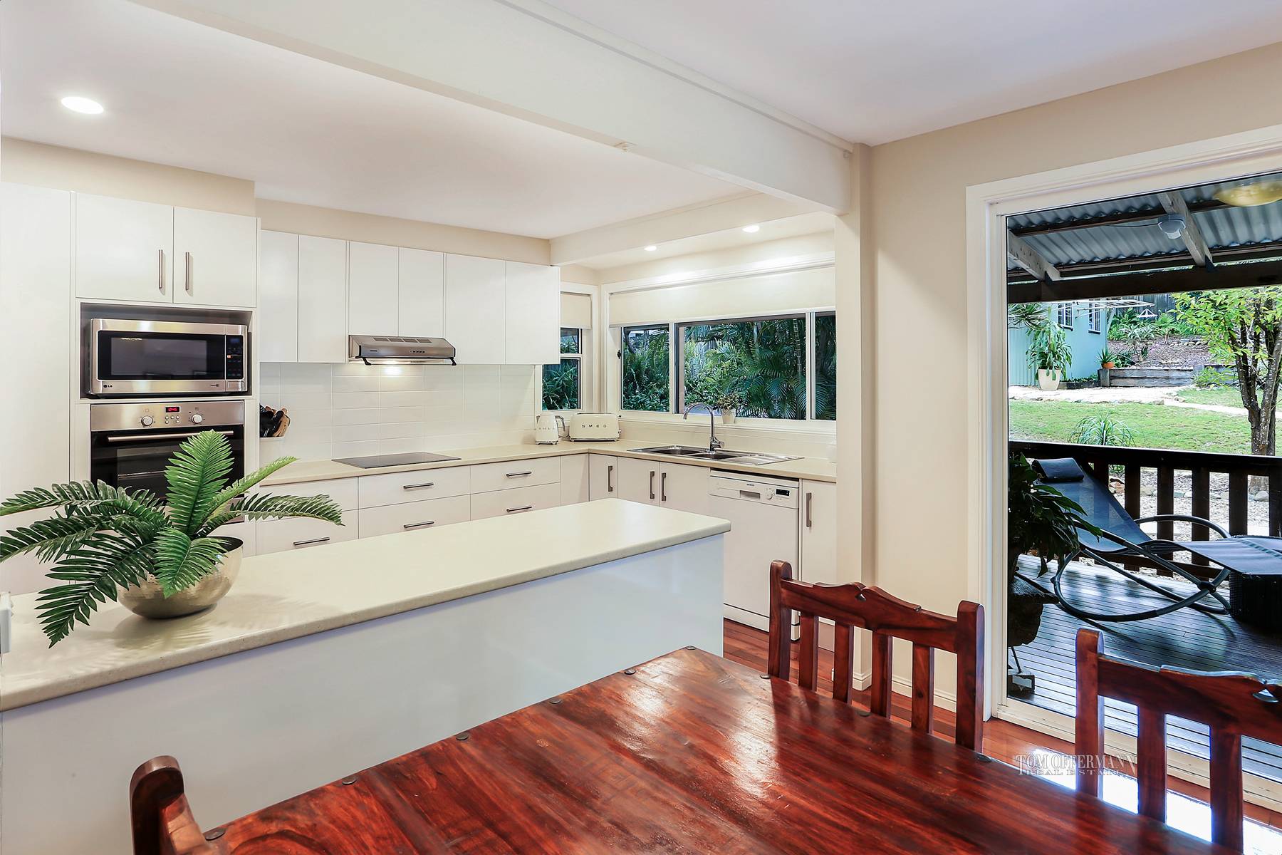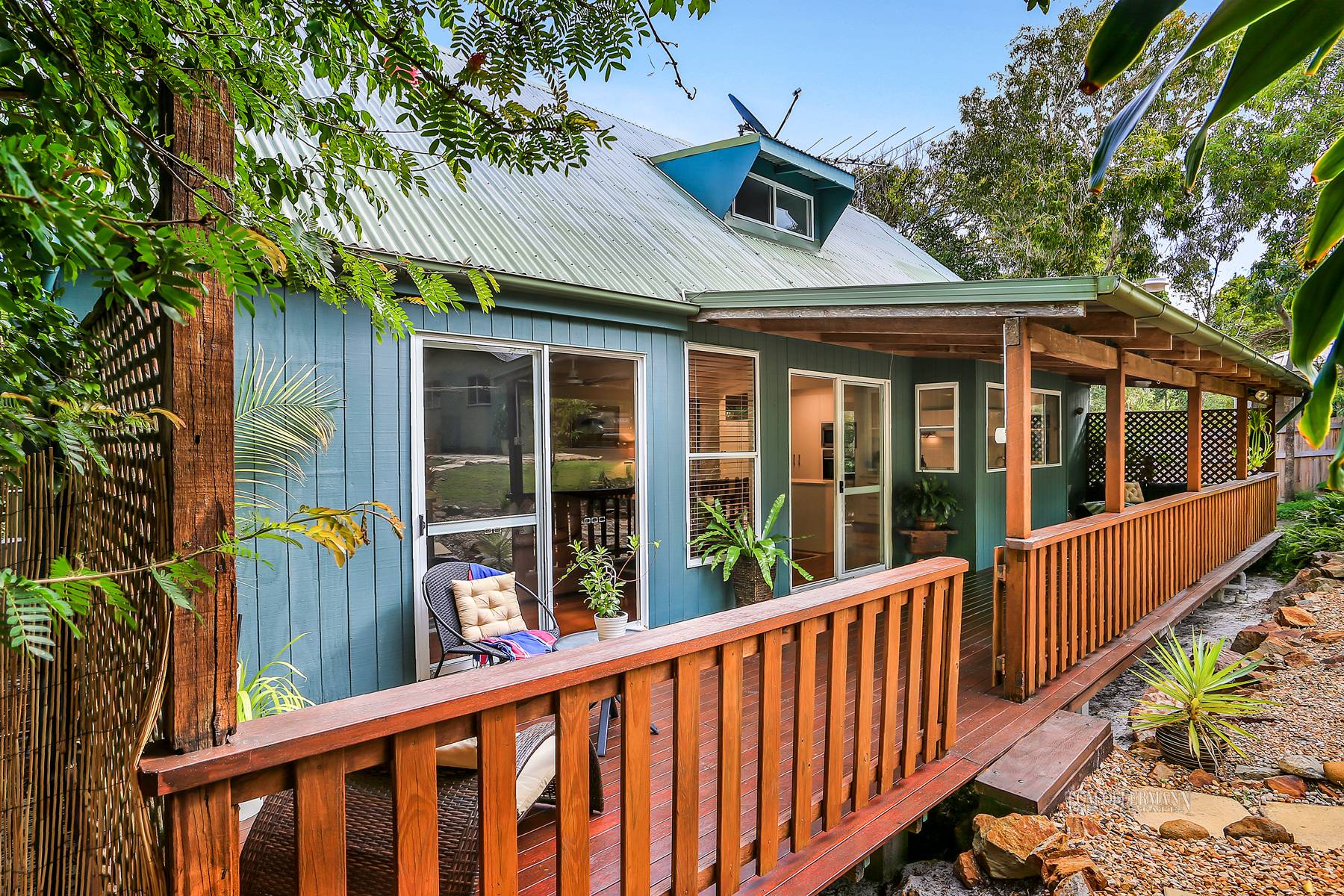 This unique beach house is just a short stroll to the sand and is fully air-conditioned and offers generous living and entertaining areas.There are high raked ceilings upstairs and immaculate polished timber floors throughout.There is a brand new kitchen, tasteful in design with stainless steel appliances and is a neutral colour scheme.The internal living area flows directly out onto large entertaining deck. This deck is spacious and private and offers a lovely outlook overlooking the large and private 880sqm allotment which offers ample room for swimming pool.