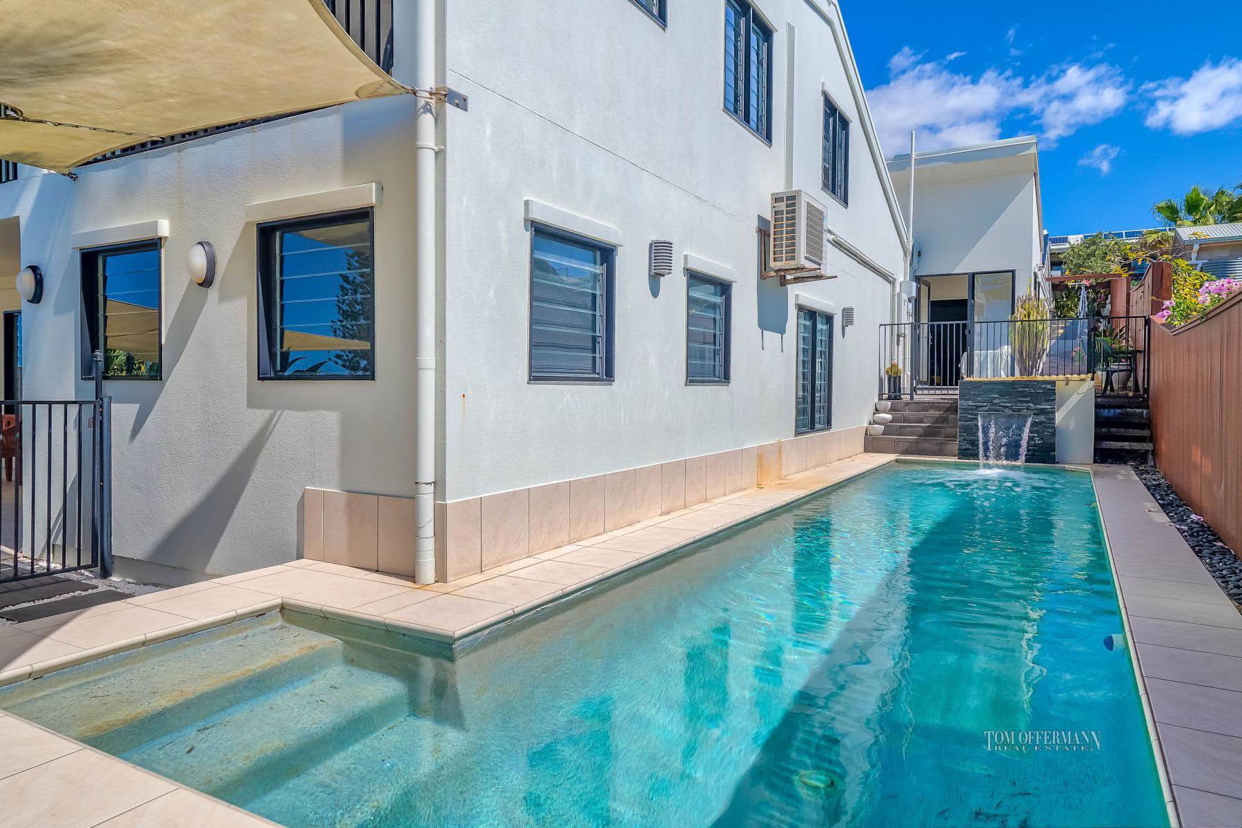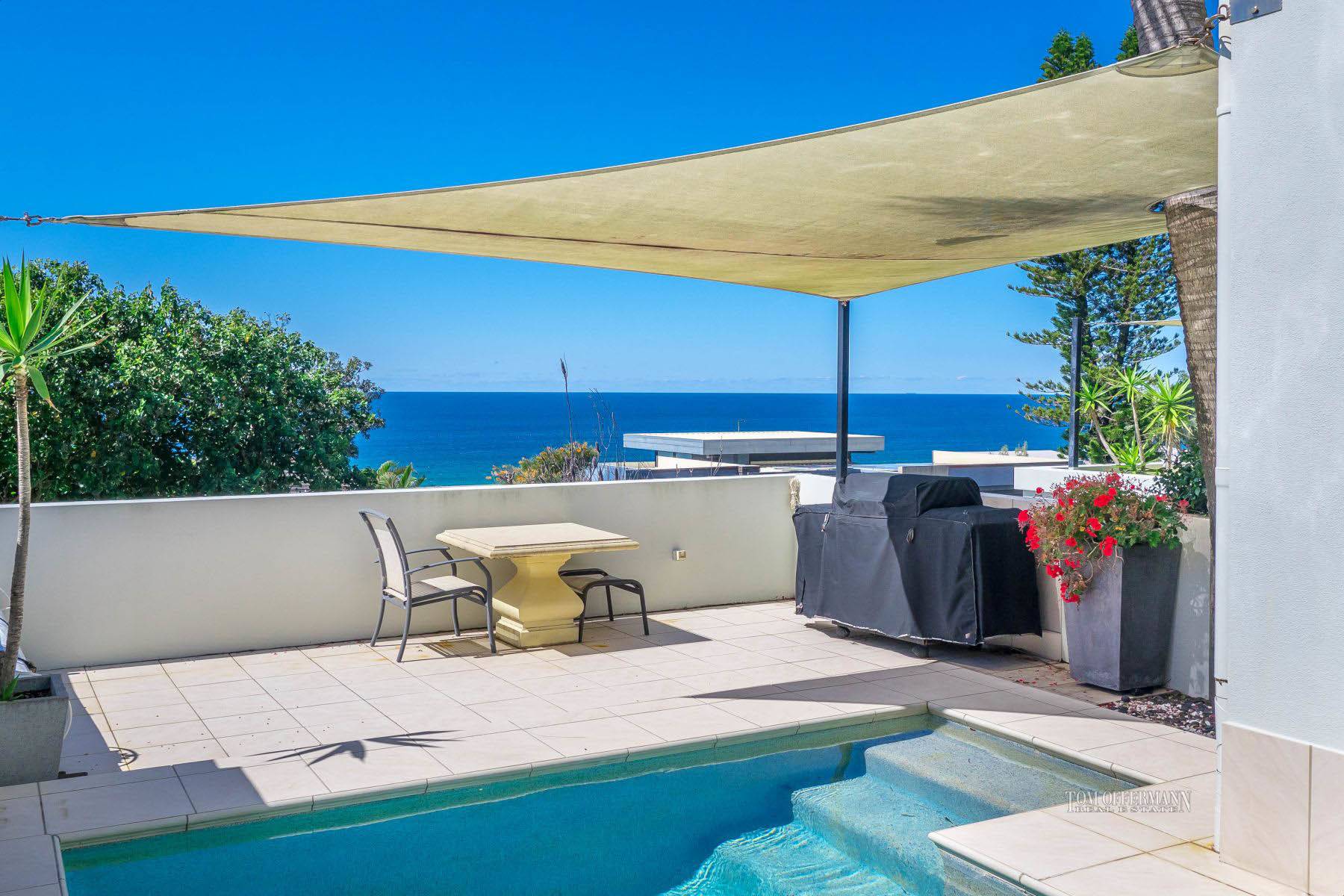 Orient Drive has a dress circle location with some of Sunrise Beaches finest homes and just a short stroll to the beach. This modern split level home has a floor plan that provides separation for guests or family to have privacy. The in-ground pool is located on the north side of the house and has a water feature.