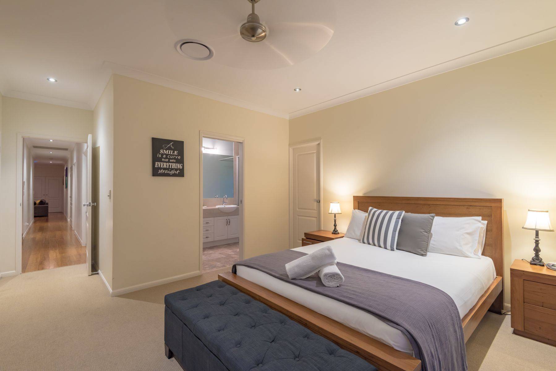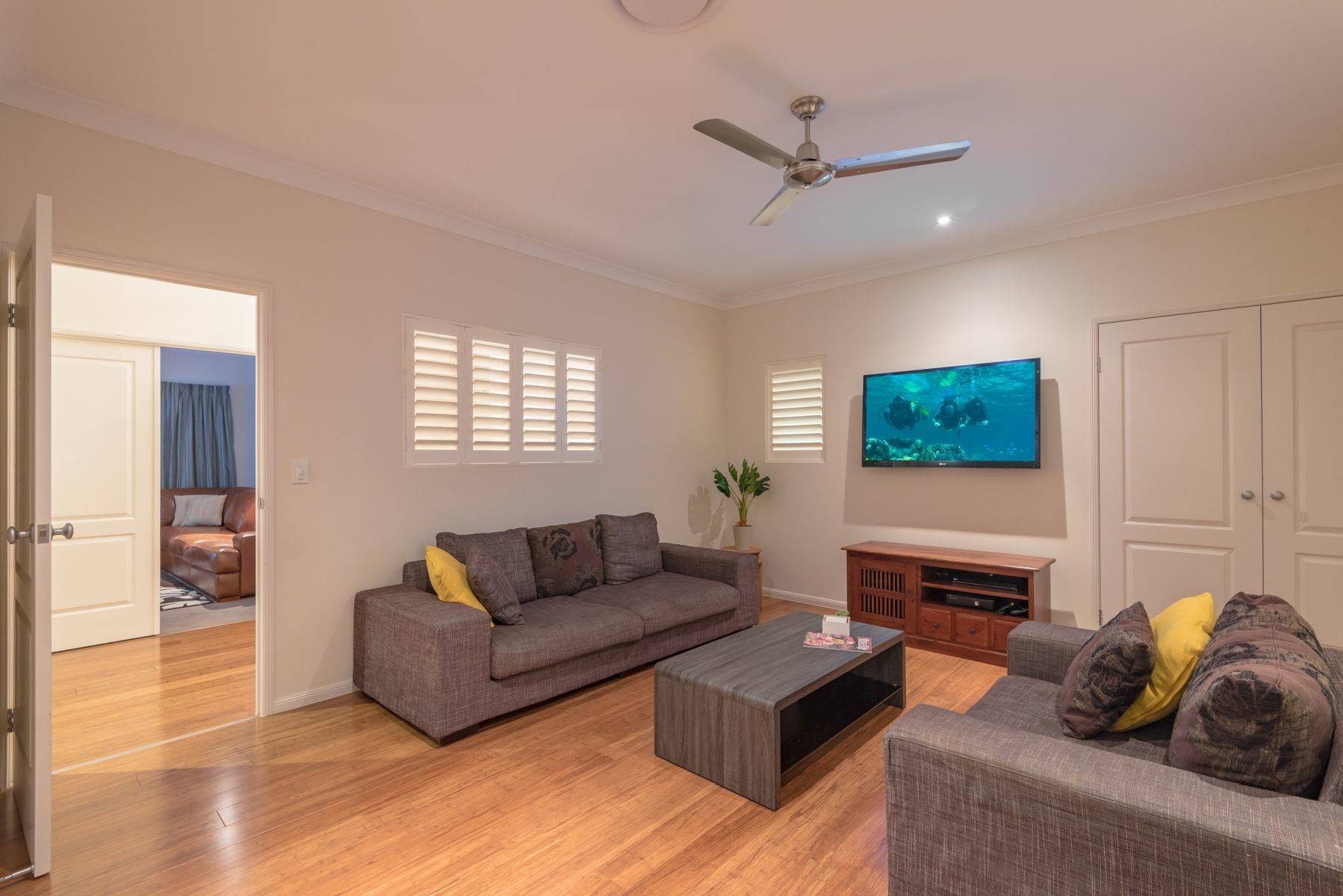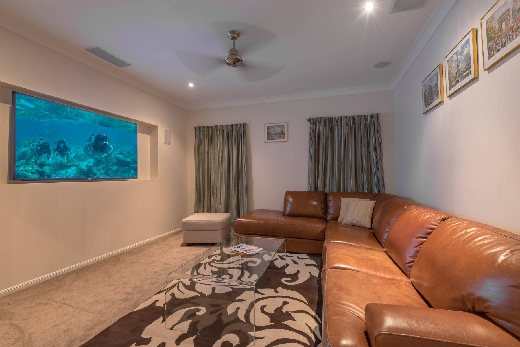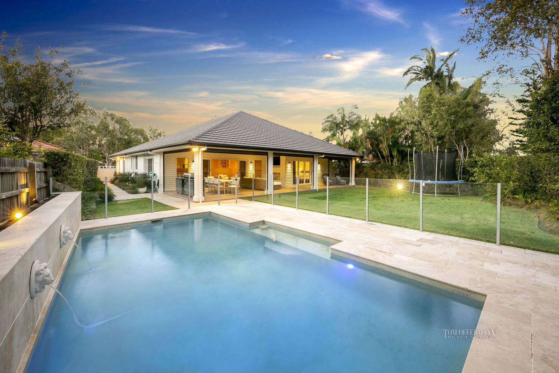 Stepping down, the expansive lounge and formal dining is a pleasure and leaves you with endless opportunity to create your own space. Gaze through the criss-cross windows or step through to the chic alfresco and admire the travertine tile surrounded pool and soak in the remainder of the oversized back lawn.