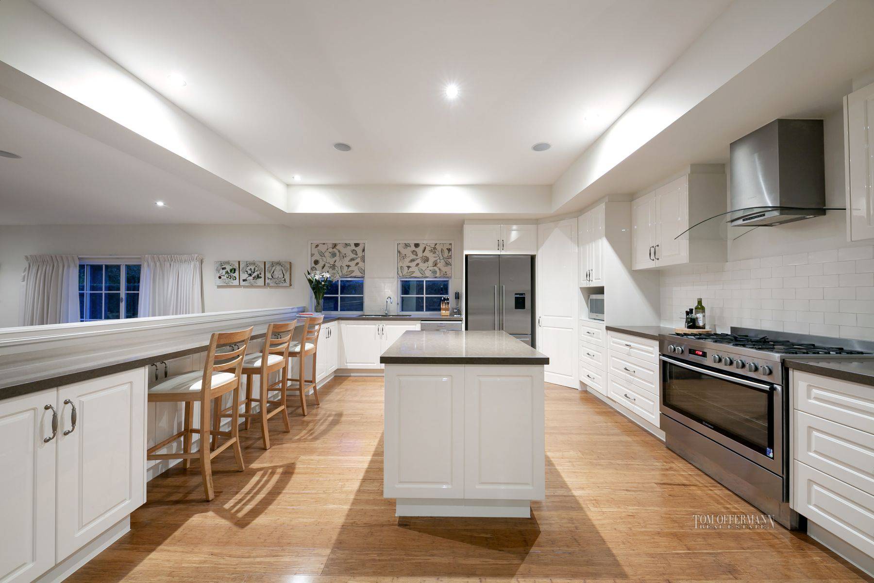 A wide entrance graces the threshold and emanates a feeling of generous proportions, continuing on, a stunning French country kitchen encapsulates a central plinth on one side of the overly large kitchen while informal dining compliments the other.