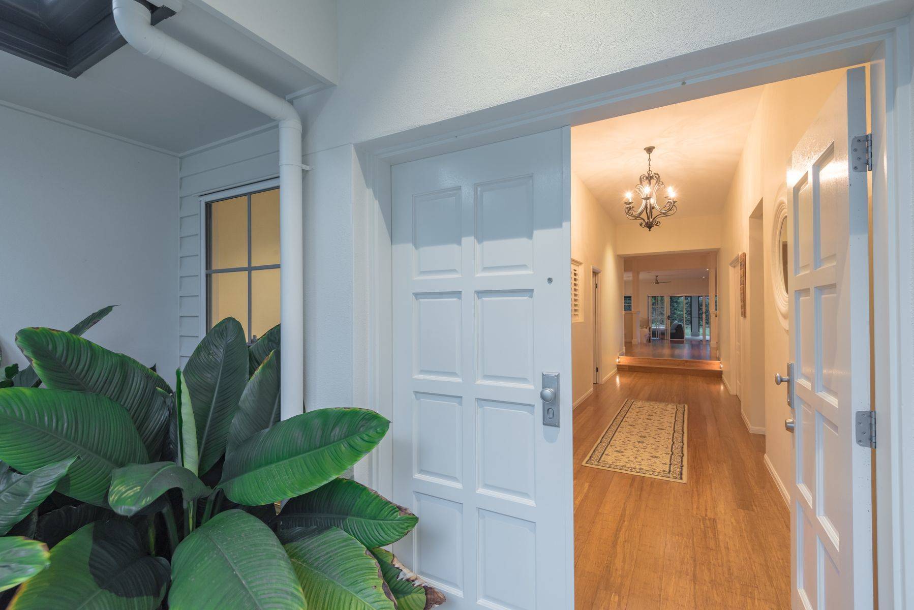An understated elegance surrounds this home beginning with the gated entry and trimmed hedgerow, welcoming and inviting you to enter through the oversized double doors.