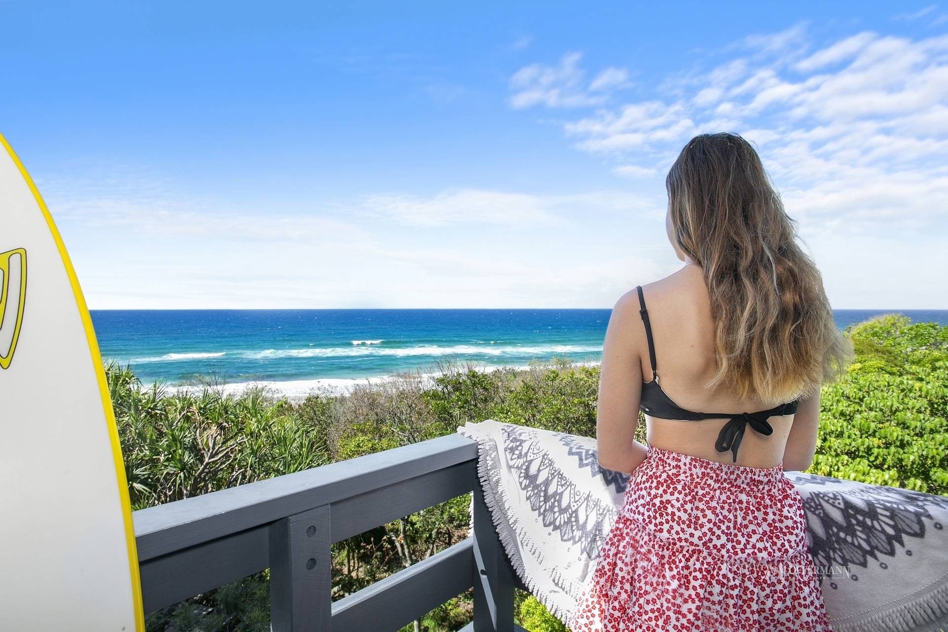 The beach house's private pathway is extremely popular for serious surfers nudged by nature's alarm clock at sunrise, early-bird dog walkers or afternoon sand castle-builders, who can open the back gate and sink toes into the white sand of Sunshine Beach.