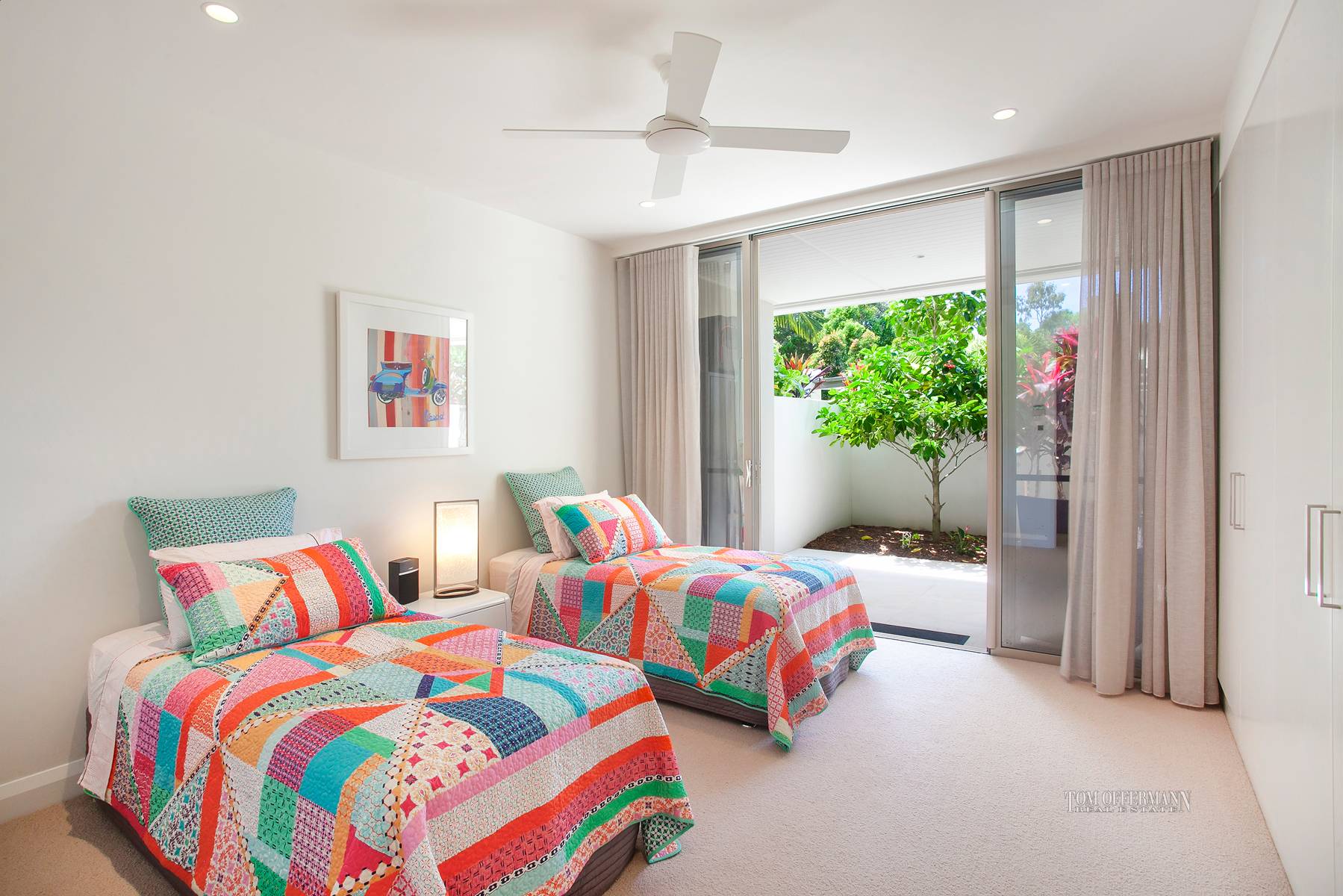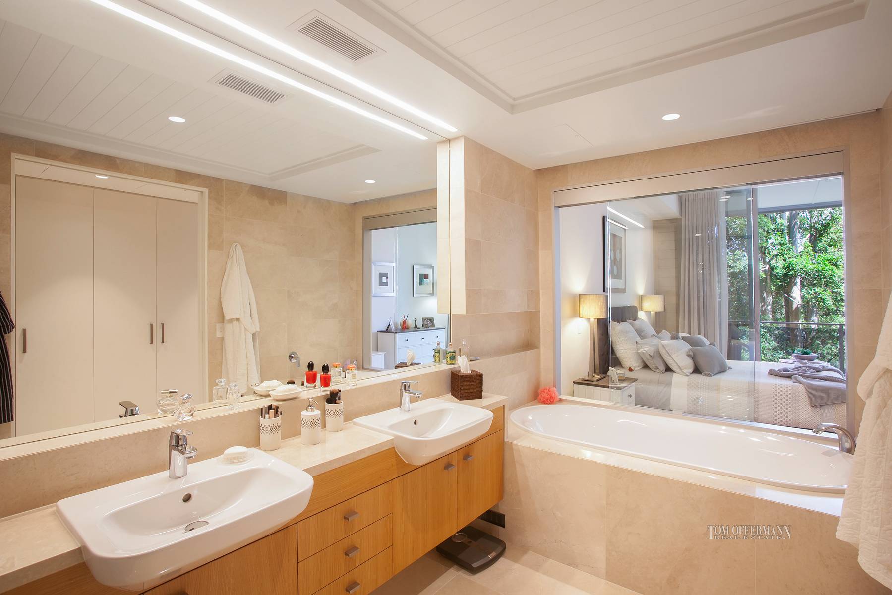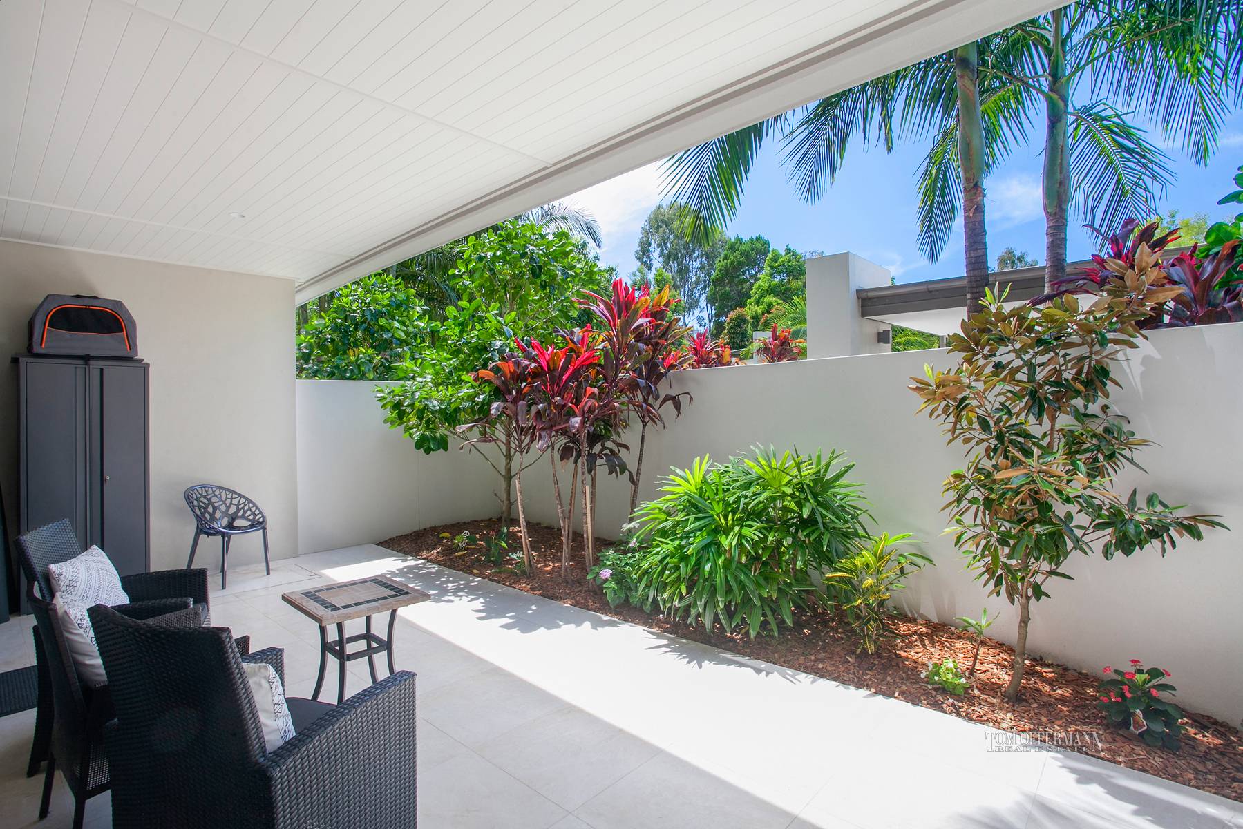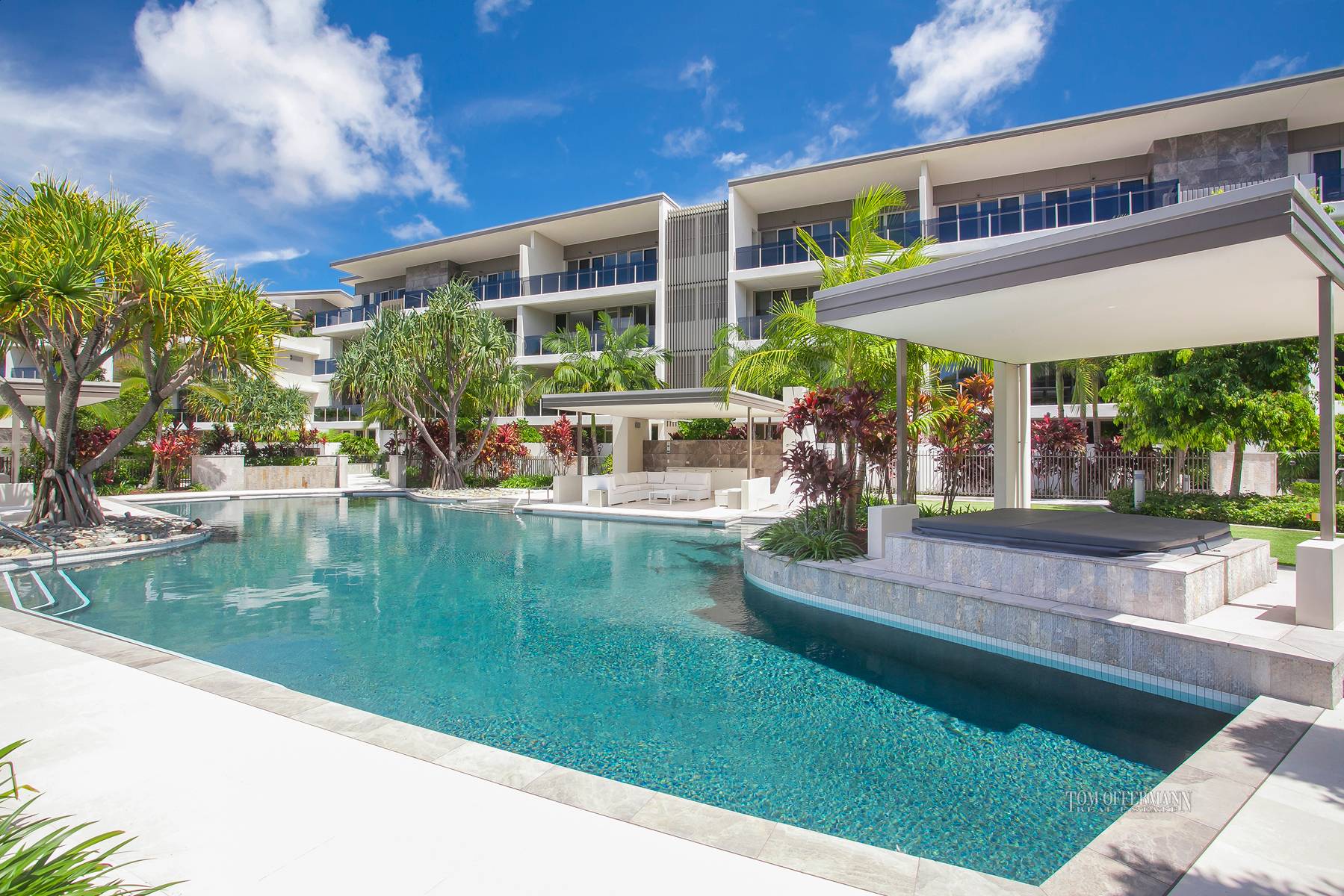 To the right off the lobby is a family-size bathroom and two large bedrooms with sliders, open to a covered courtyard. It's not just a very private alternative space for alfresco entertaining but there's another piece de resistance. Open your gate and unrivalled facilities such as a heated 25m lagoon pool surrounded by beautifully manicured gardens, a gazebo, pavilion with outdoor kitchen, indoor plunge pool, change facilities and a gym, are steps away.