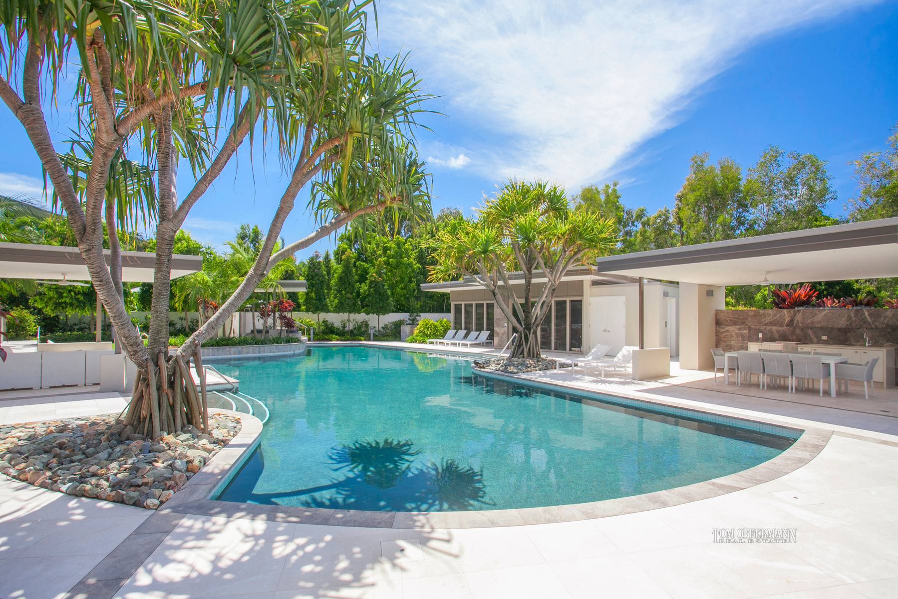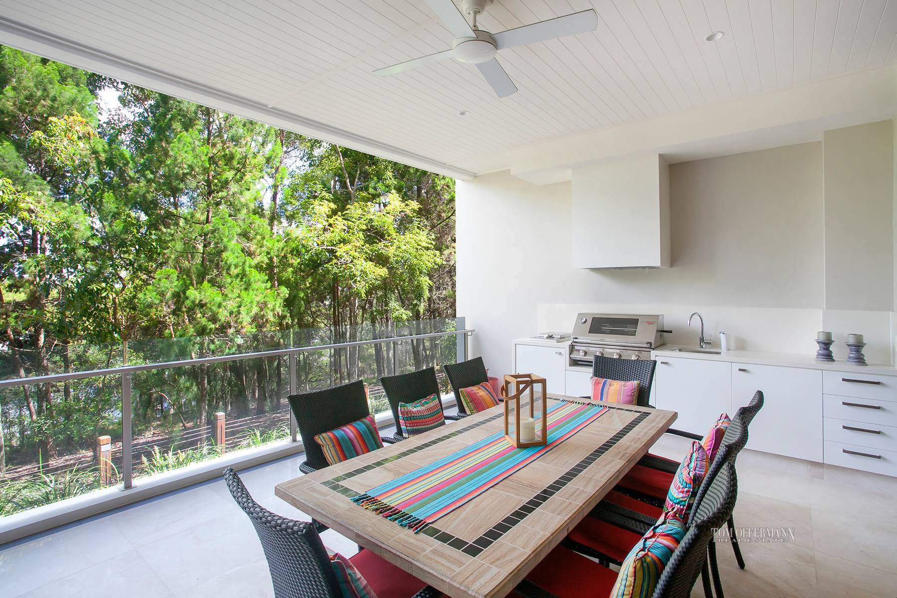 From the elevated prodigious alfresco living space on the ground floor, nature rules imposing its quiet strengths, with filtered views through Paperbark trees in the reserve abutting a waterway on Noosa Sound. There's an emphasis on privacy; the only intrusion is birdsong.