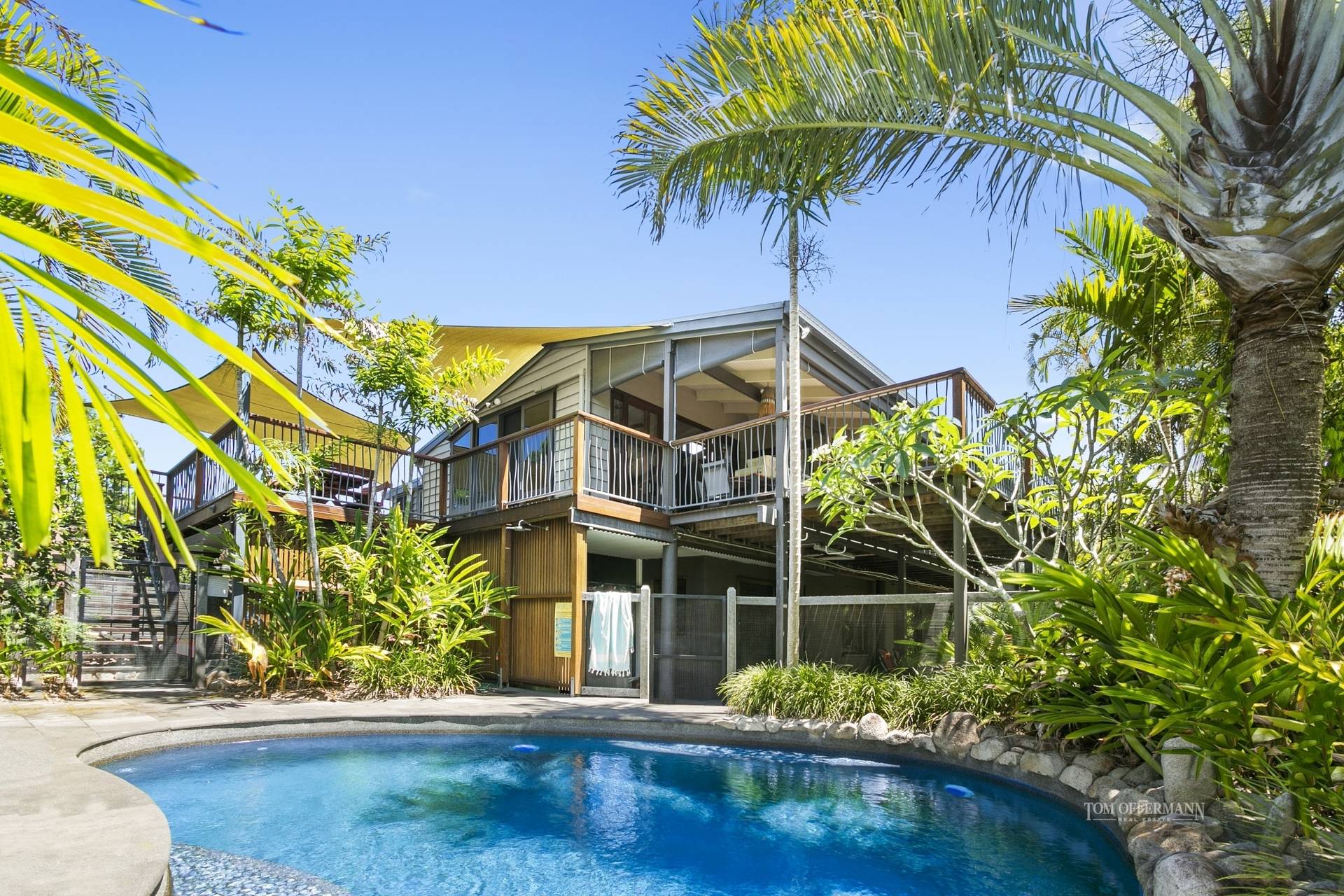 A feel good family home amongst leafy serenity. This character filled residence in the heart of Marcus Beach and is positioned boarding the National Park and is located approx 800m walk to the sand.