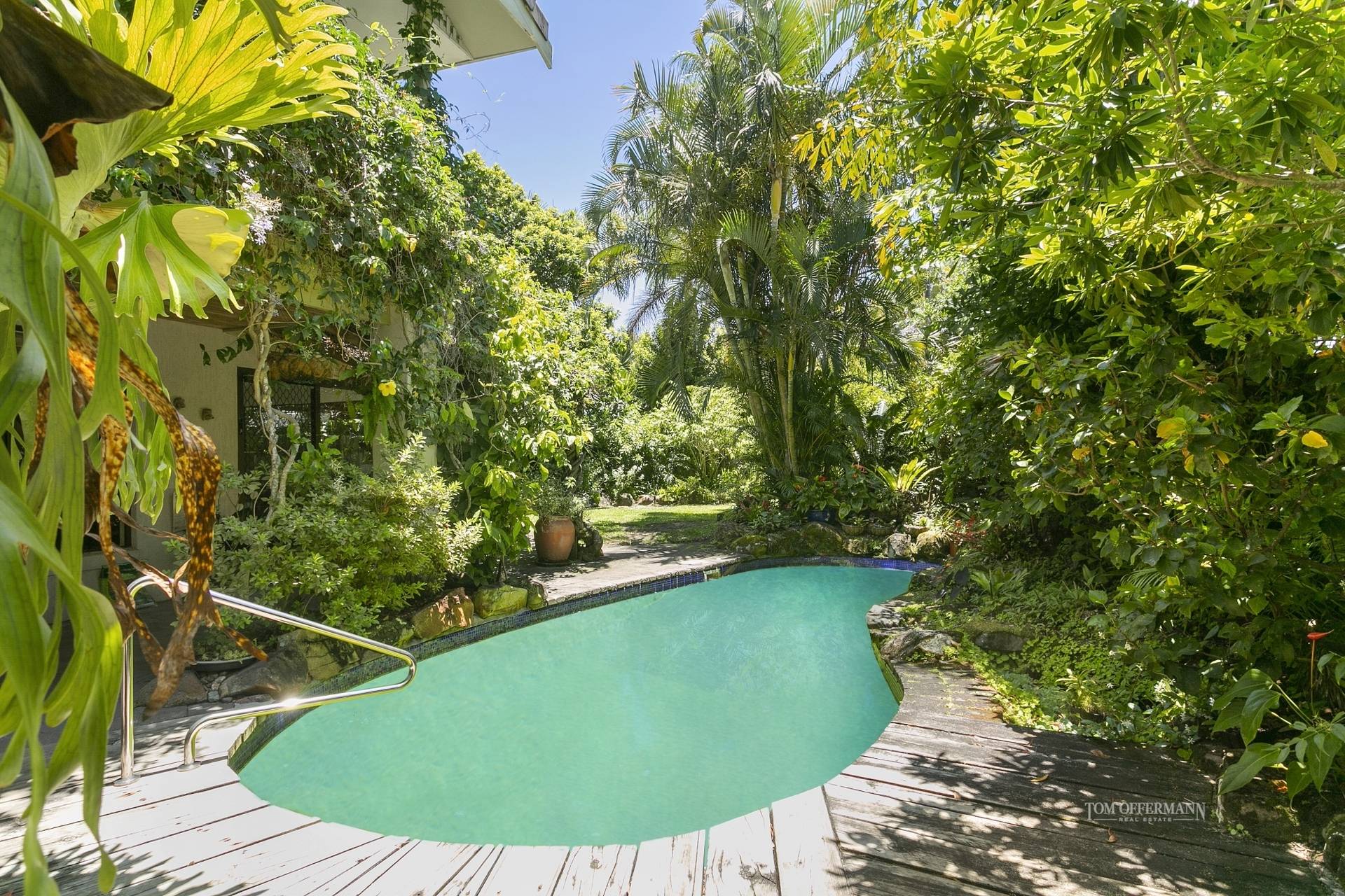 North-facing, very private and running the width of the property are lush, park-like rock gardens with sub-tropical plants including palms and extraordinary Staghorns. Abutting the back garden is a free-form pool and on the house-side is a terrace, the perfect spot for barbecues.