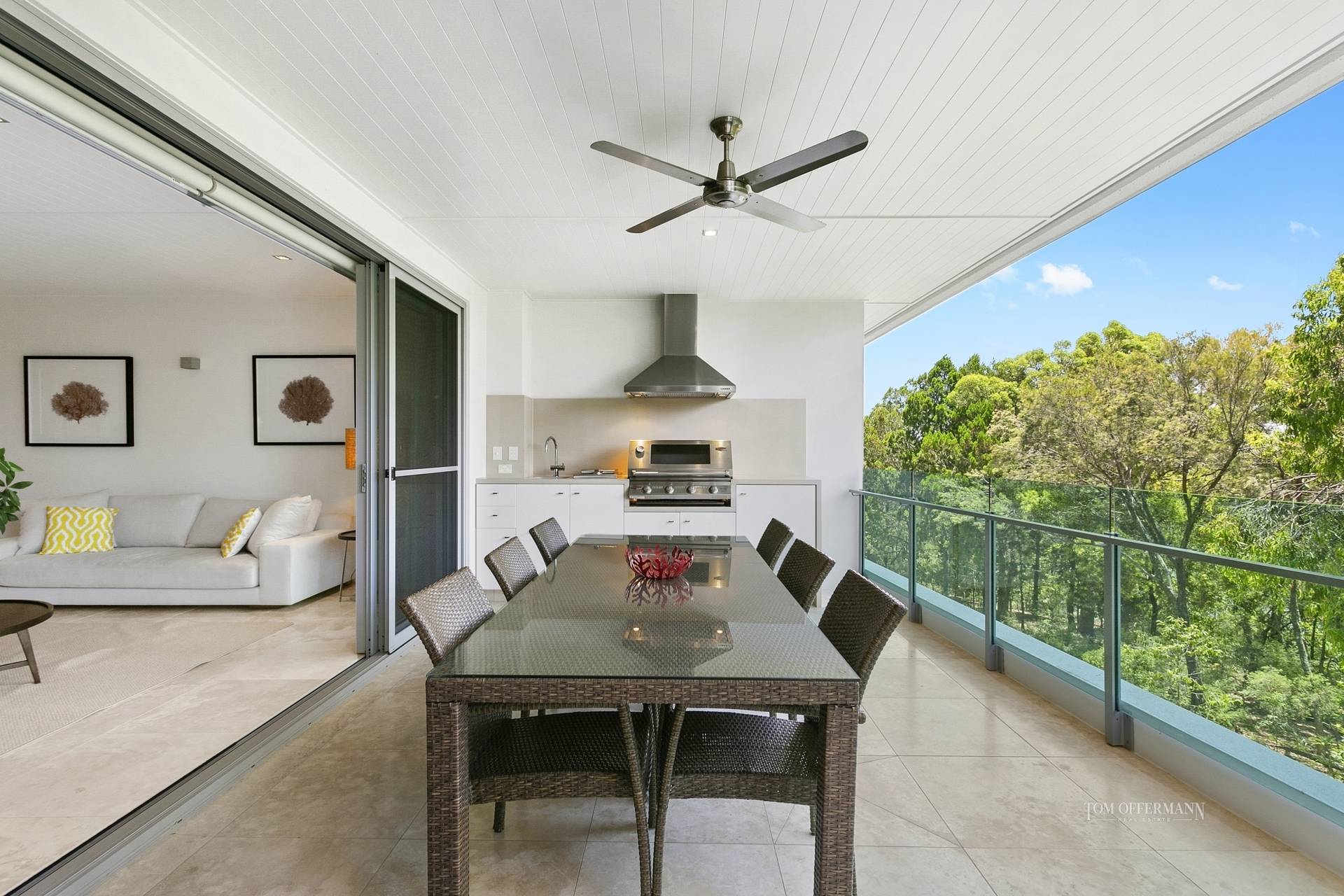 Featured in Queensland Homes magazine for its relaxed coastal sophistication, it's synonymous of perfect apartment living Noosa-style. Balance and symmetry are accentuated by the expansive use of glass sliders to maximise the connection with the environment, via the secluded terrace with its spa and fully equipped outdoor kitchen.