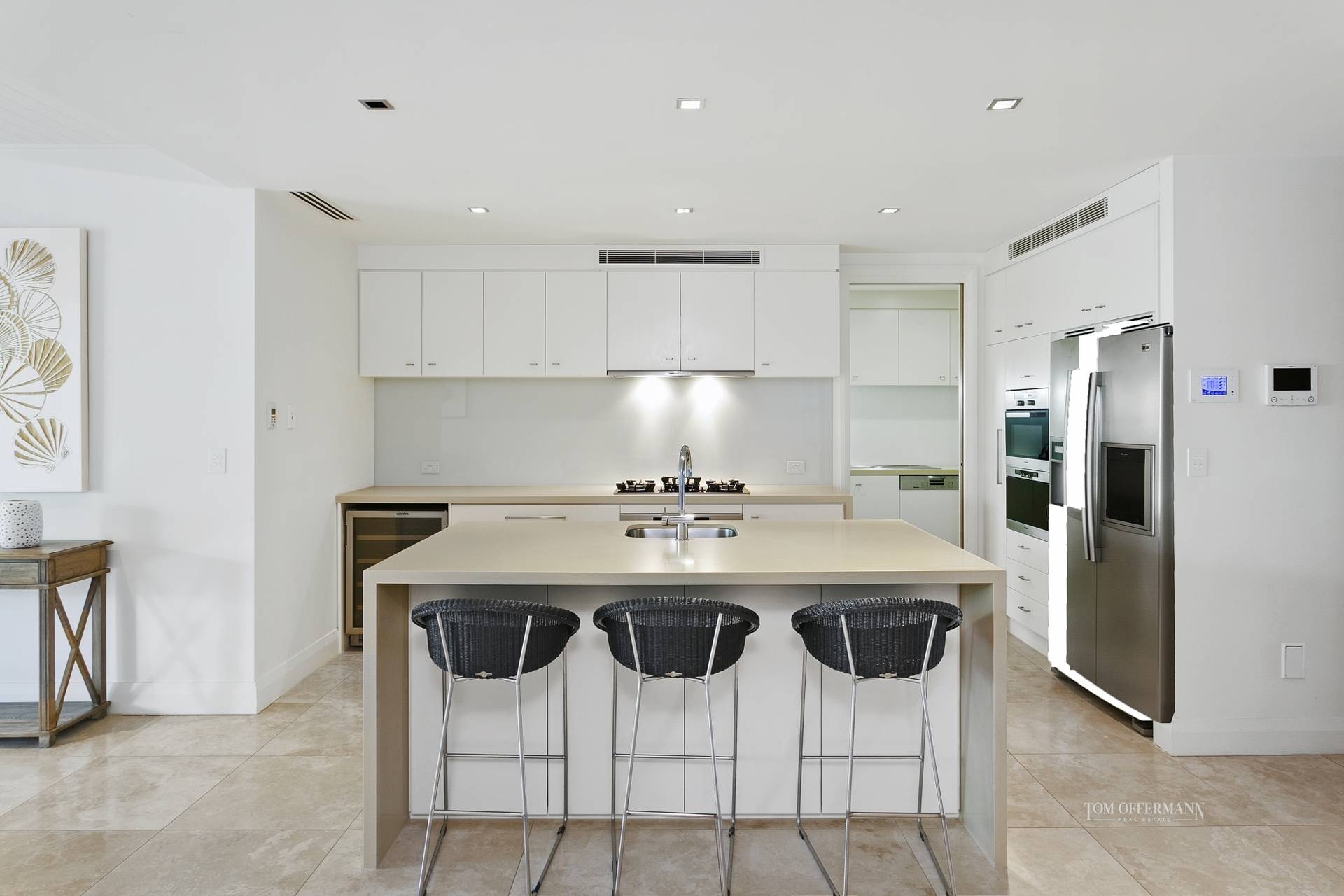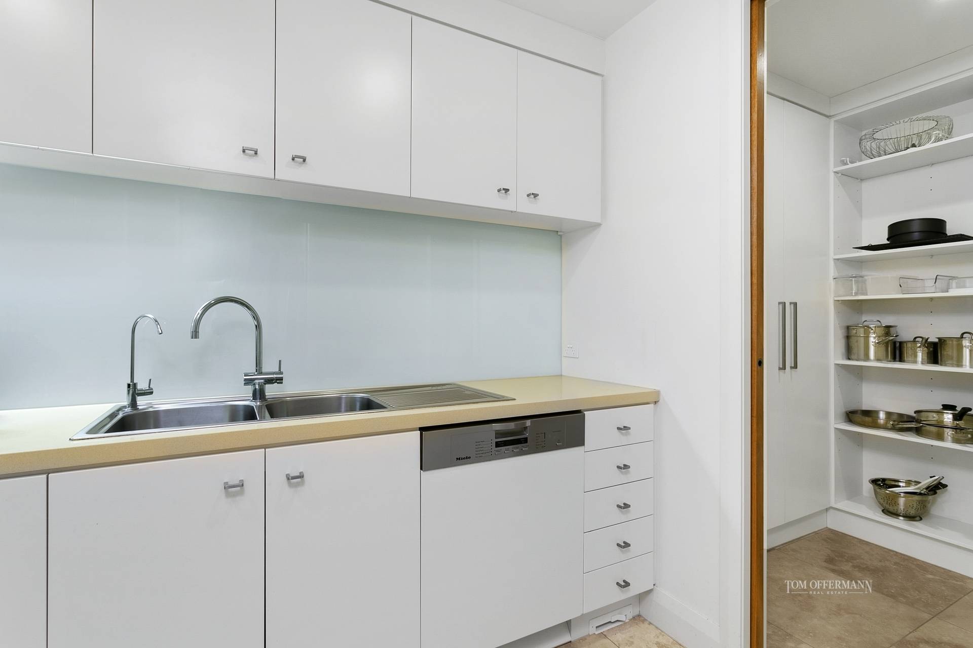 When it comes to kitchens, Caesar stone benchtops, a 2-pak finish, top quality Miele appliances including gas cook top, ice-maker fridge and Vintec wine fridge, do spell class, however open the door and abracadabra there's more: a butler's pantry and store room.