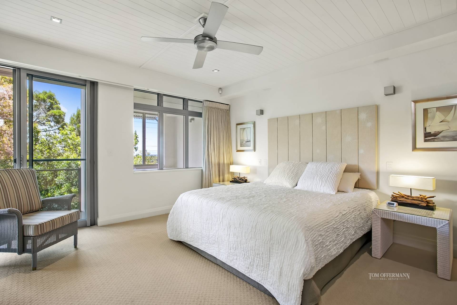 It's all about living in a dress circle location and the clever perception of being immersed in the treetops with filtered views framing Laguna Bay to Double Island Point. There's an emphasis on privacy, the only intrusions being eucalypts and paper barks, and of course birdsong.