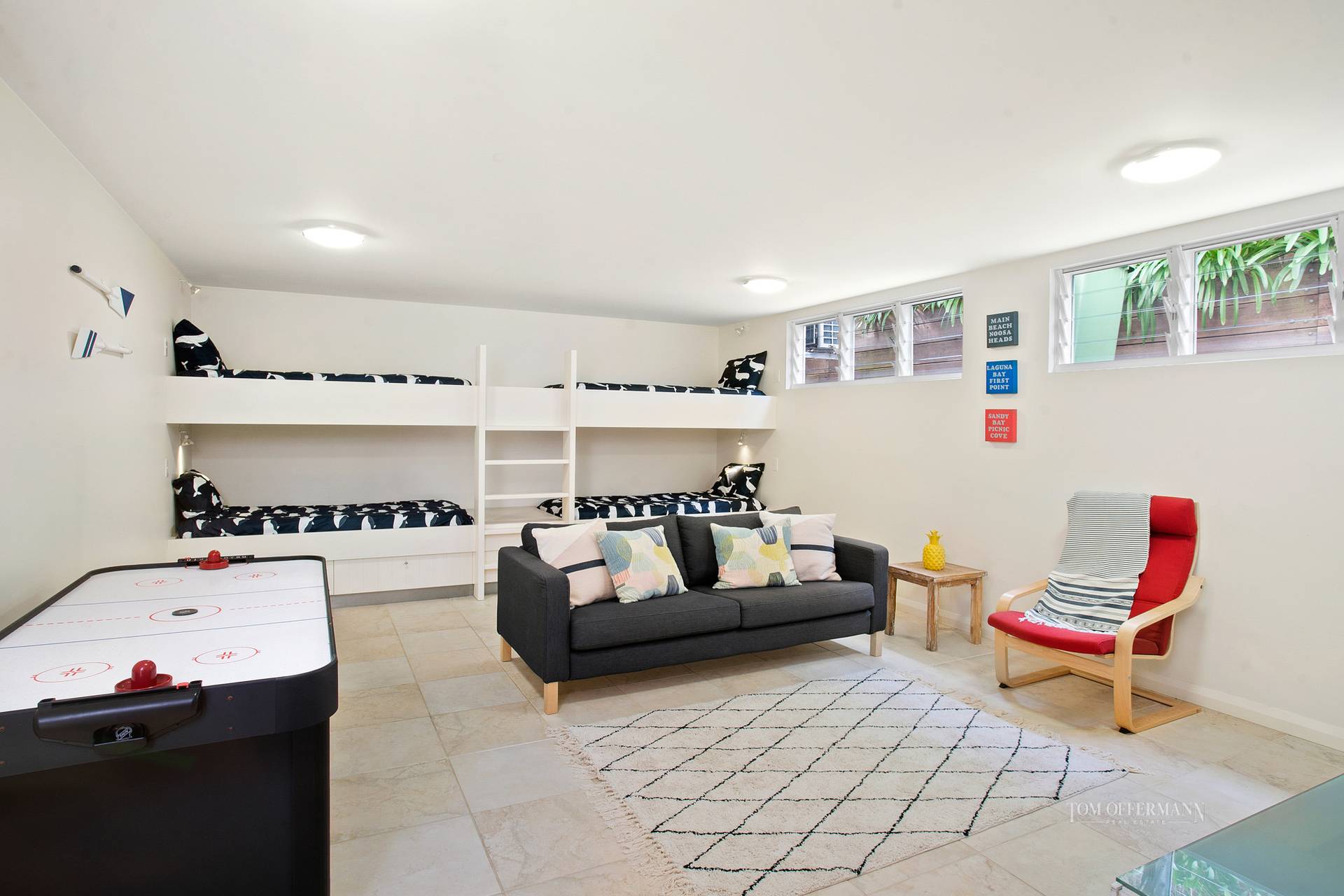 Complementing upstairs is an extremely well thought-out kid's domain on the lower ground floor. Table tennis, television, computer games, bunks for four and a bathroom seem like a teens-only den come true.