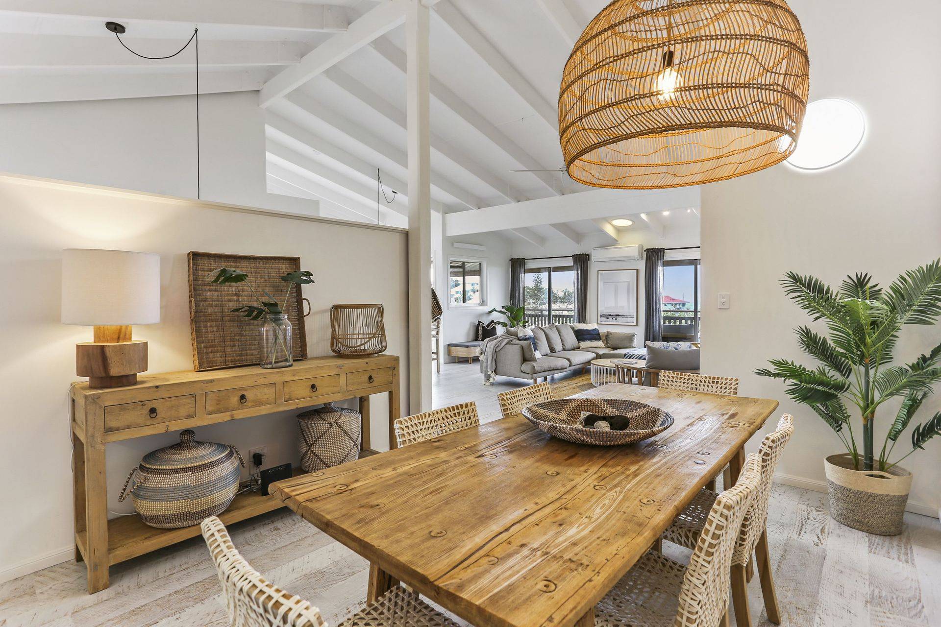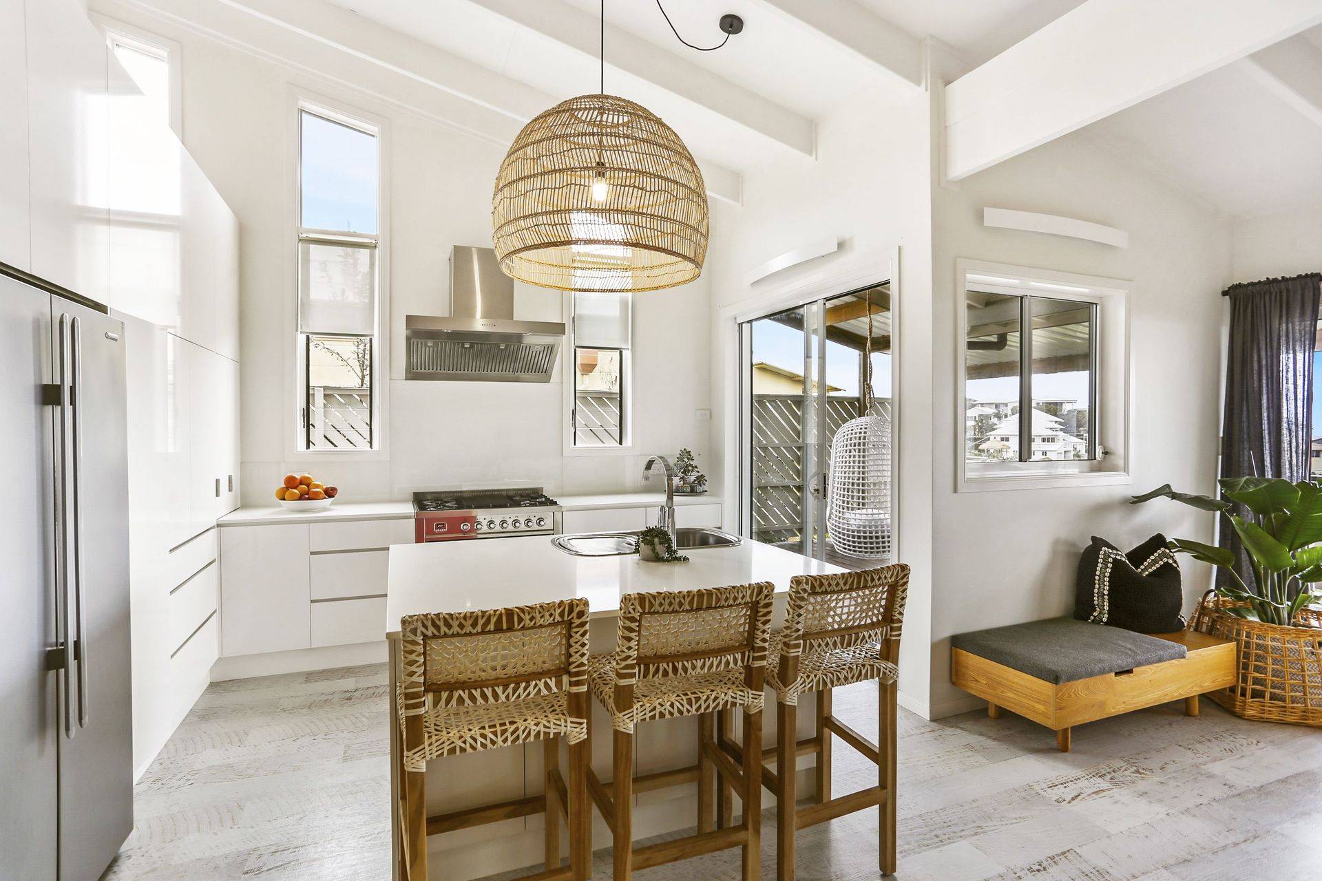 As you enter the home, you are immediately struck by the view and the airiness of the light filled space. Striking, high vaulted ceilings and white-washed timber floors add timeless appeal, creating a genuine feeling of space and compliment the high-end coastal decor.