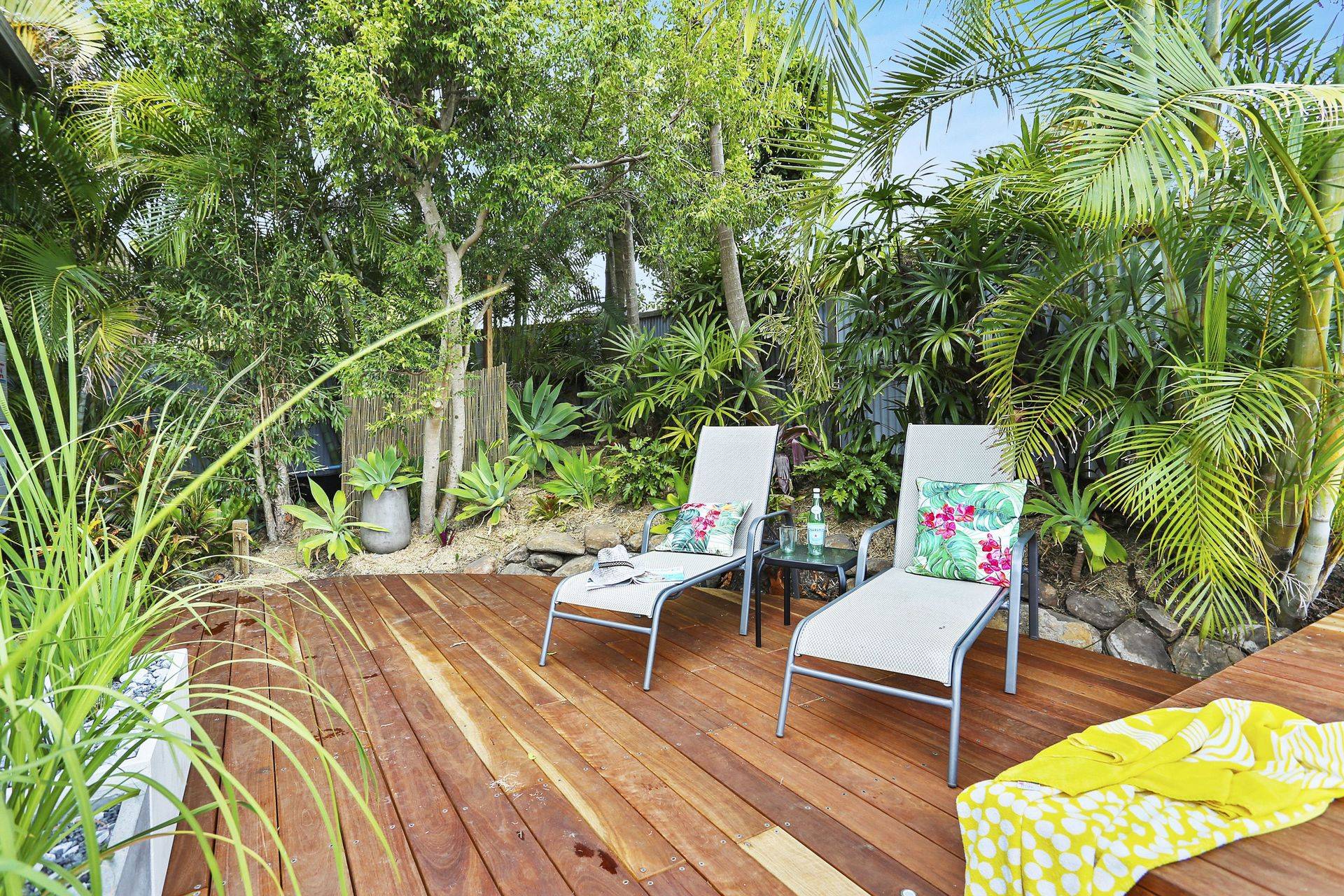 Moments walk on the boardwalk, through the back gate, leads you to the ever popular "Chalet & Co" coffee shop and golden sands of Sunrise Beach, literally at your back door. You can choose to walk south along kilometers of pristine sandy beach all the way to Coolum or a ten minute walk to the north and you are in the famous village of Sunshine Beach with cafes, bars, shops and restaurants for the choosing.