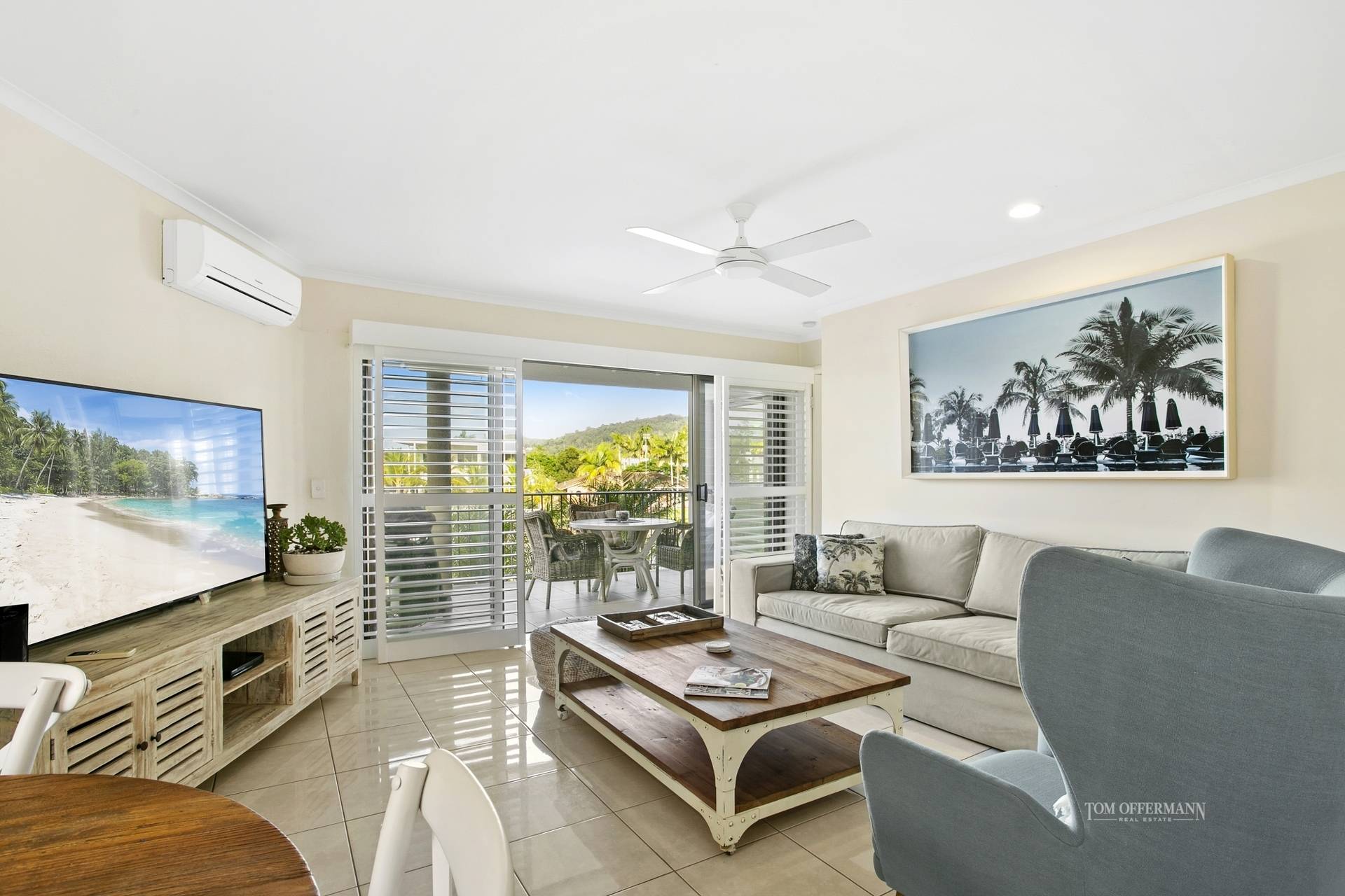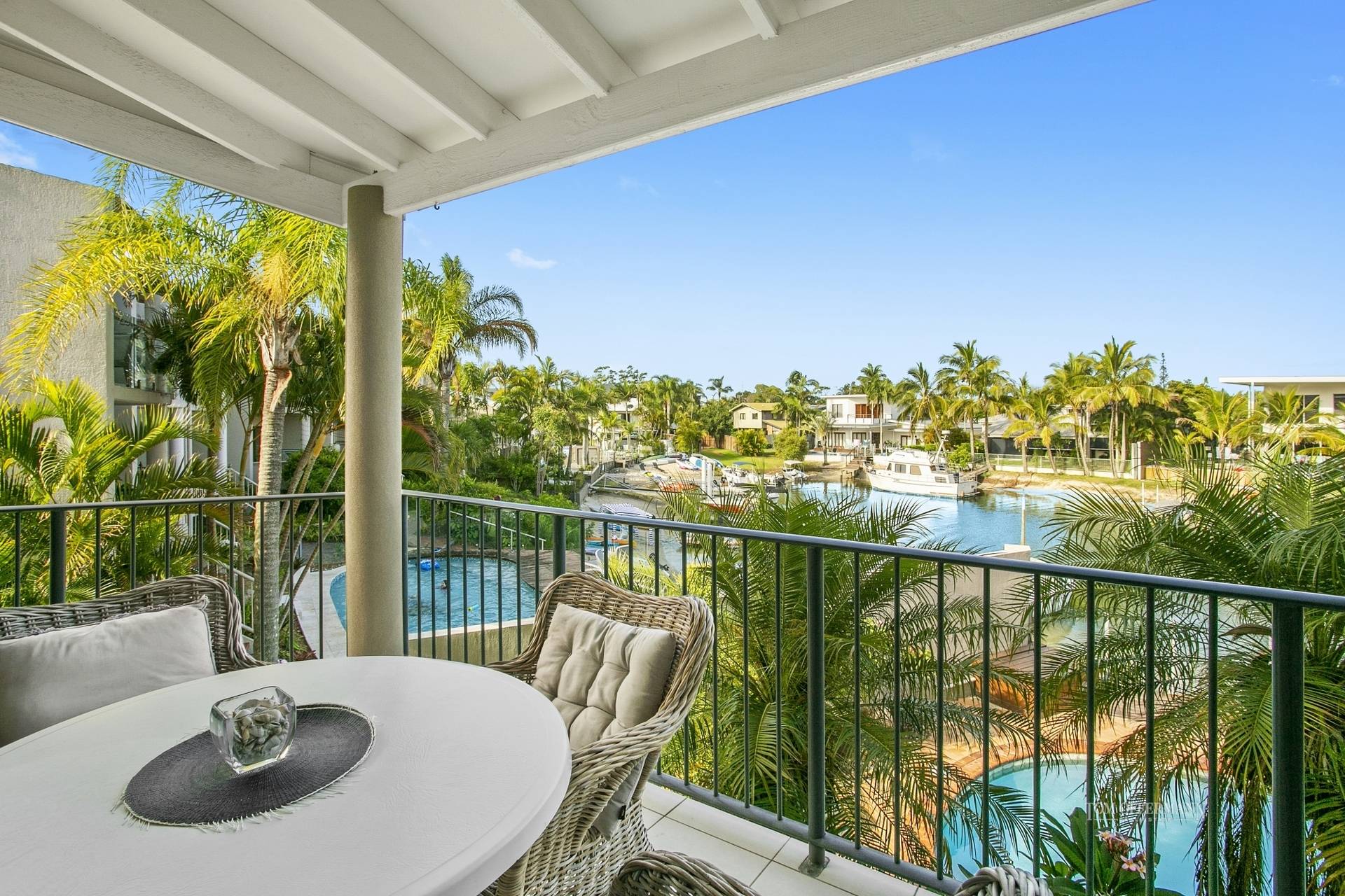 North-facing looking towards Noosa Hill. This beautifully newly renovated top floor unit has gorgeous views of the river from your balcony.