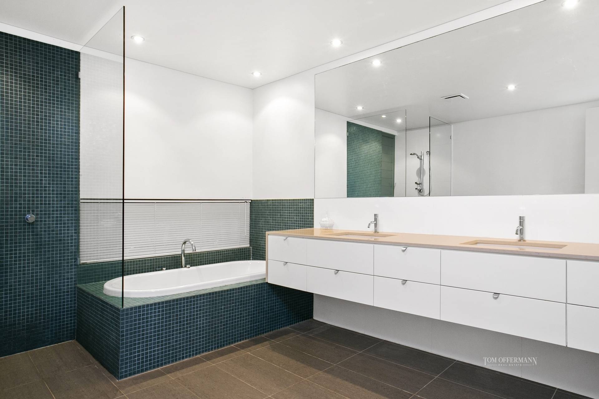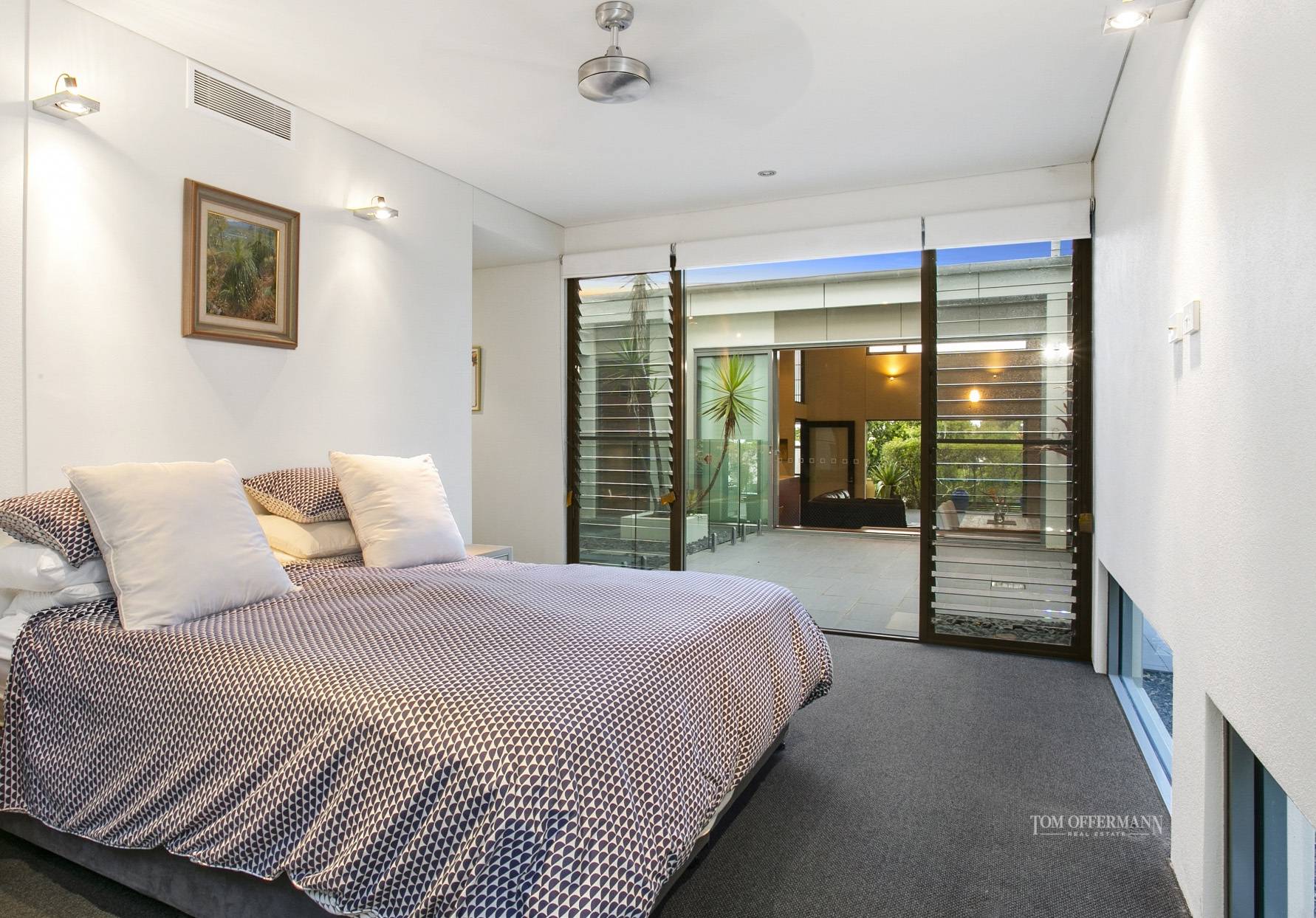 Along the louvred hallway in the south wing is a master-style bedroom with a courtyard, walk-in robe and a family-size bathroom. Polished Australian hardwoods on the staircase and throughout the mezzanine is a feature, as are the cooling lake breezes and natural light drenching the over-sized master suite. A large bathroom and a walk-in robe/dressing room with custom-built cabinetry, shelving and hanging spaces complete the retreat-style upper level.