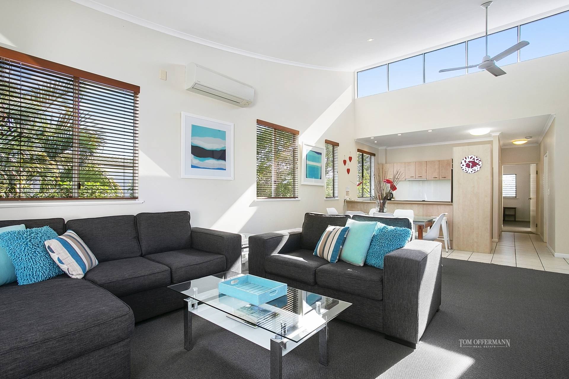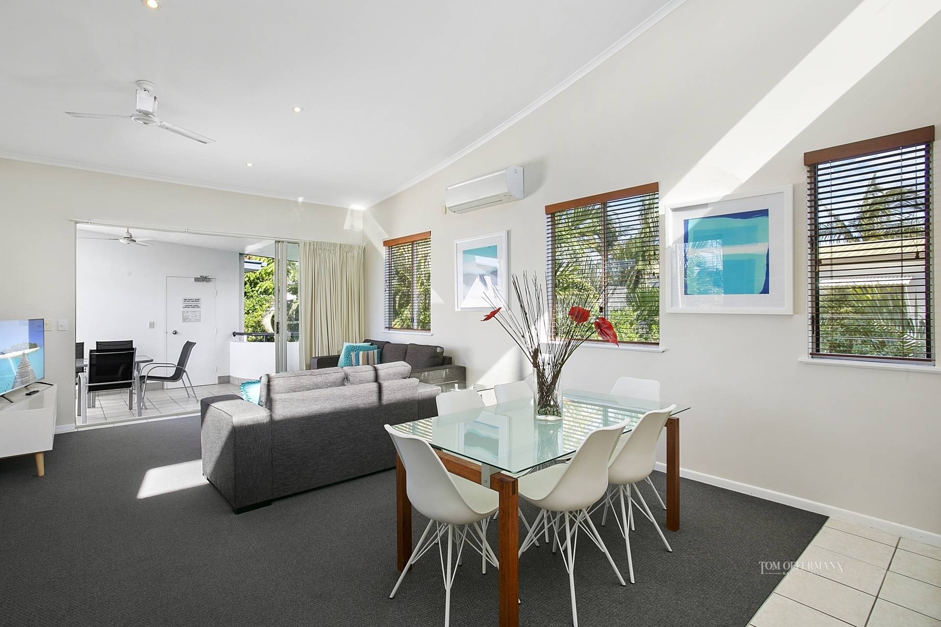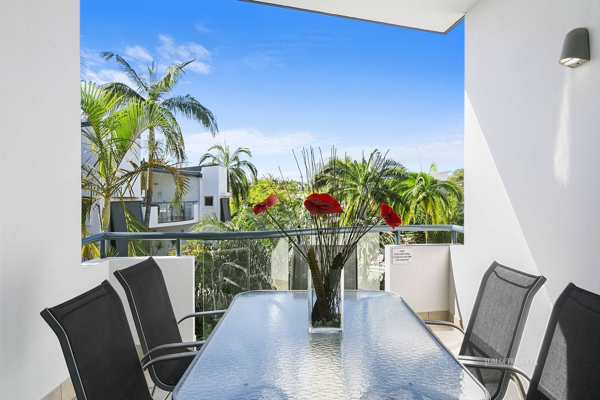This top floor unit has a sundrenched living area and an al fresco balcony for all year round entertaining. A unique feature of the apartment are the soaring ceilings in the lounge and a large open balcony with views over the tropical pool.