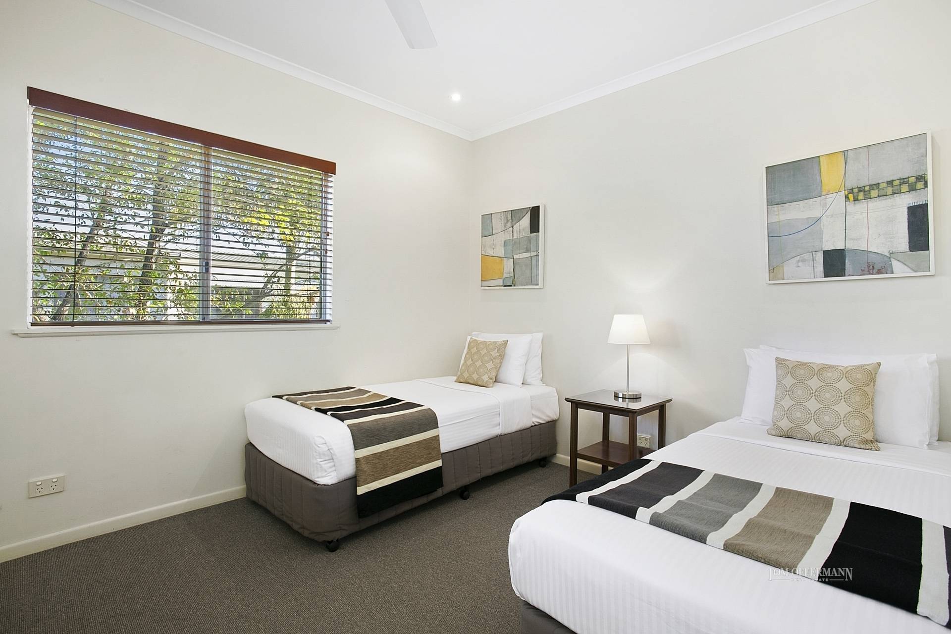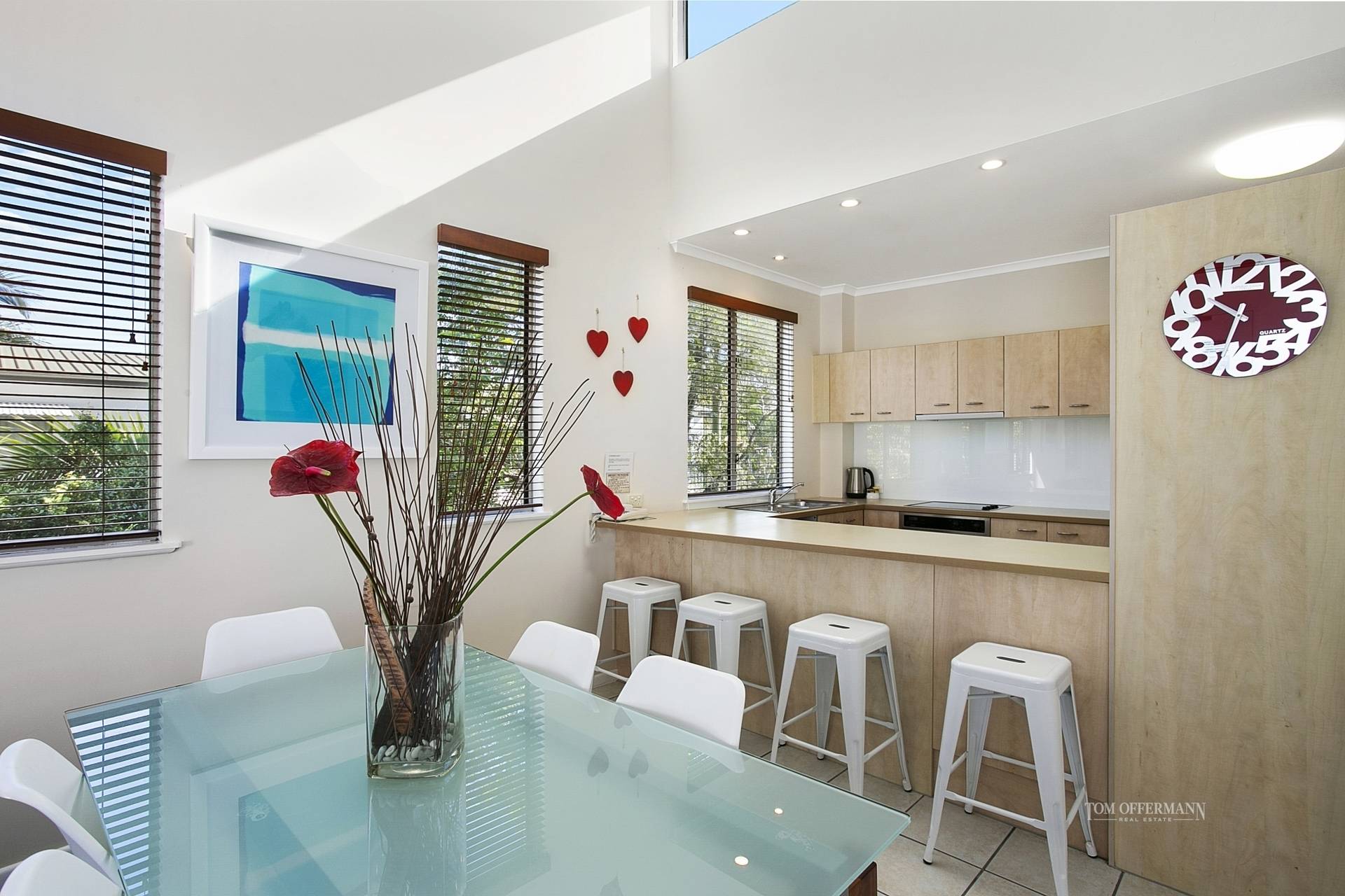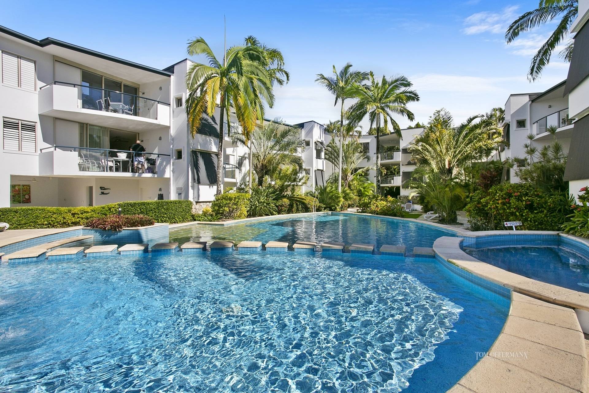 This top floor unit has a sundrenched living area and an al fresco balcony for all year round entertaining. A unique feature of the apartment are the soaring ceilings in the lounge and a large open balcony with views over the tropical pool.