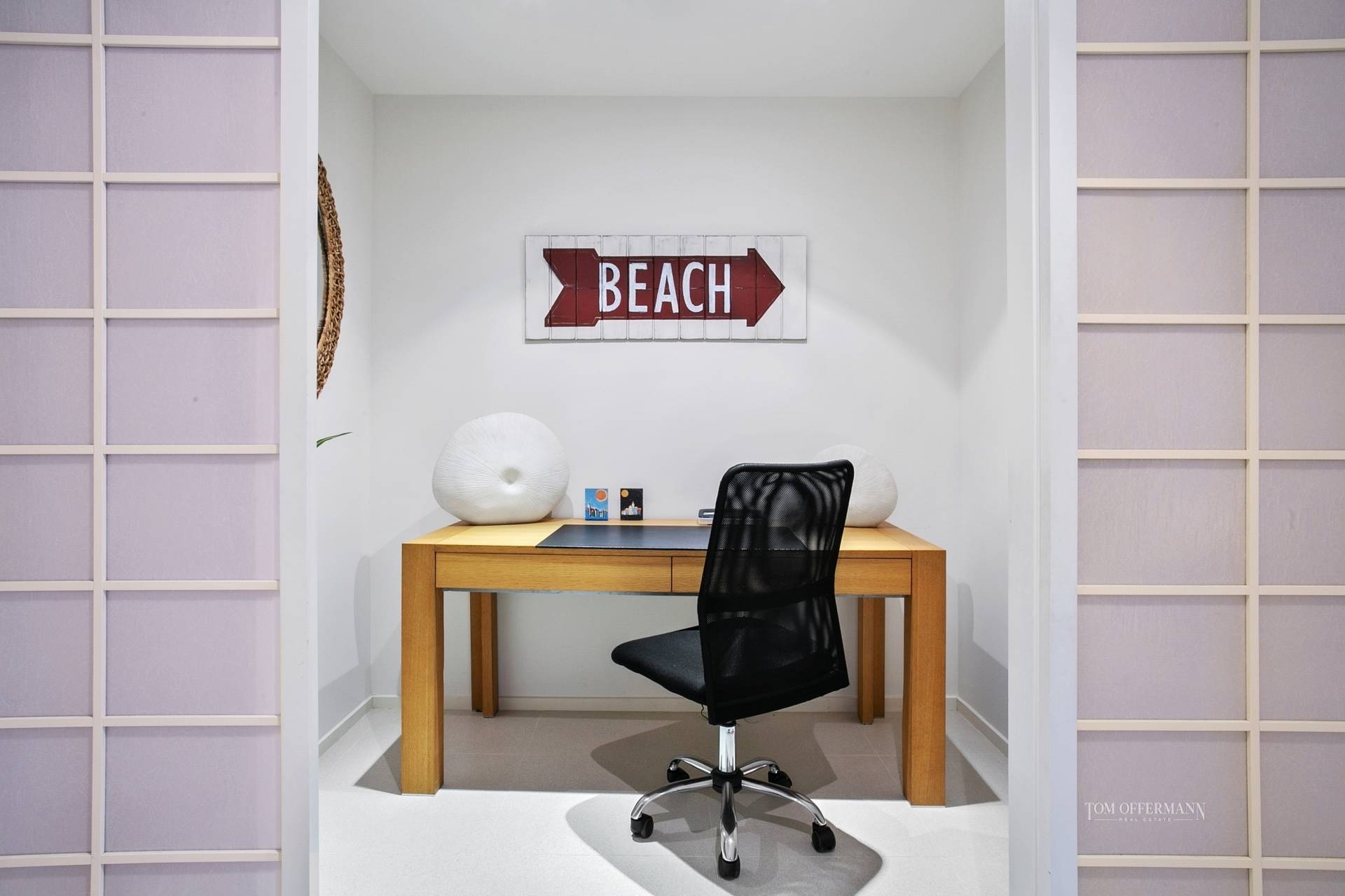Look beyond and check out the seamless connection to outdoors. The pool dazzles in the sunlight, the terrace with its palm-fringed garden and sandy-hued pavers is ideal for sun worshippers and barbeques, plus when the kids get bored why not send them out to the park, which is fully equipped with swings and slides.