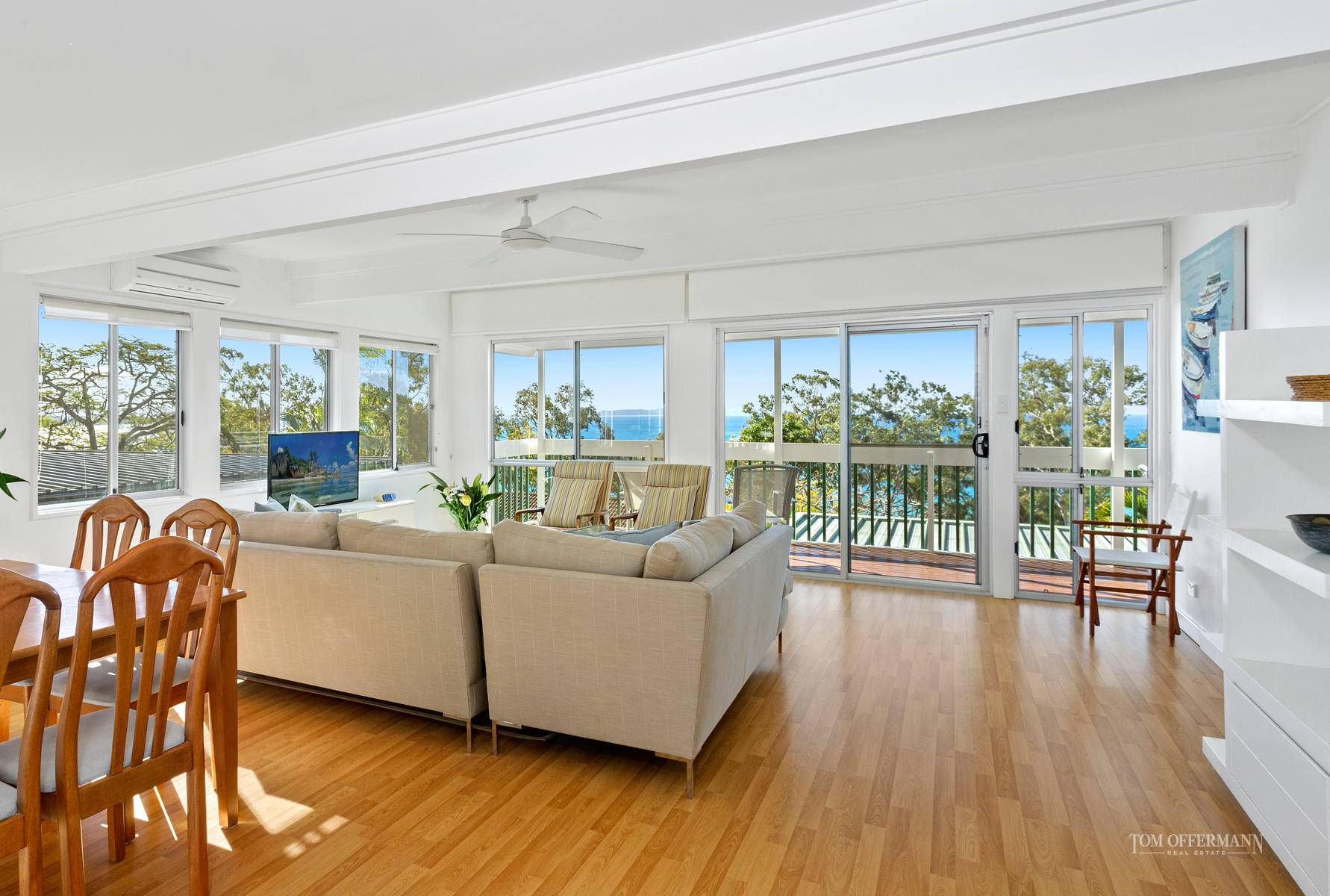 The 9.0m wide deck provides post-card views down to Little Cove, across Laguna Bay to the Noosa North Shore and to the west, Main Beach and the river mouth.