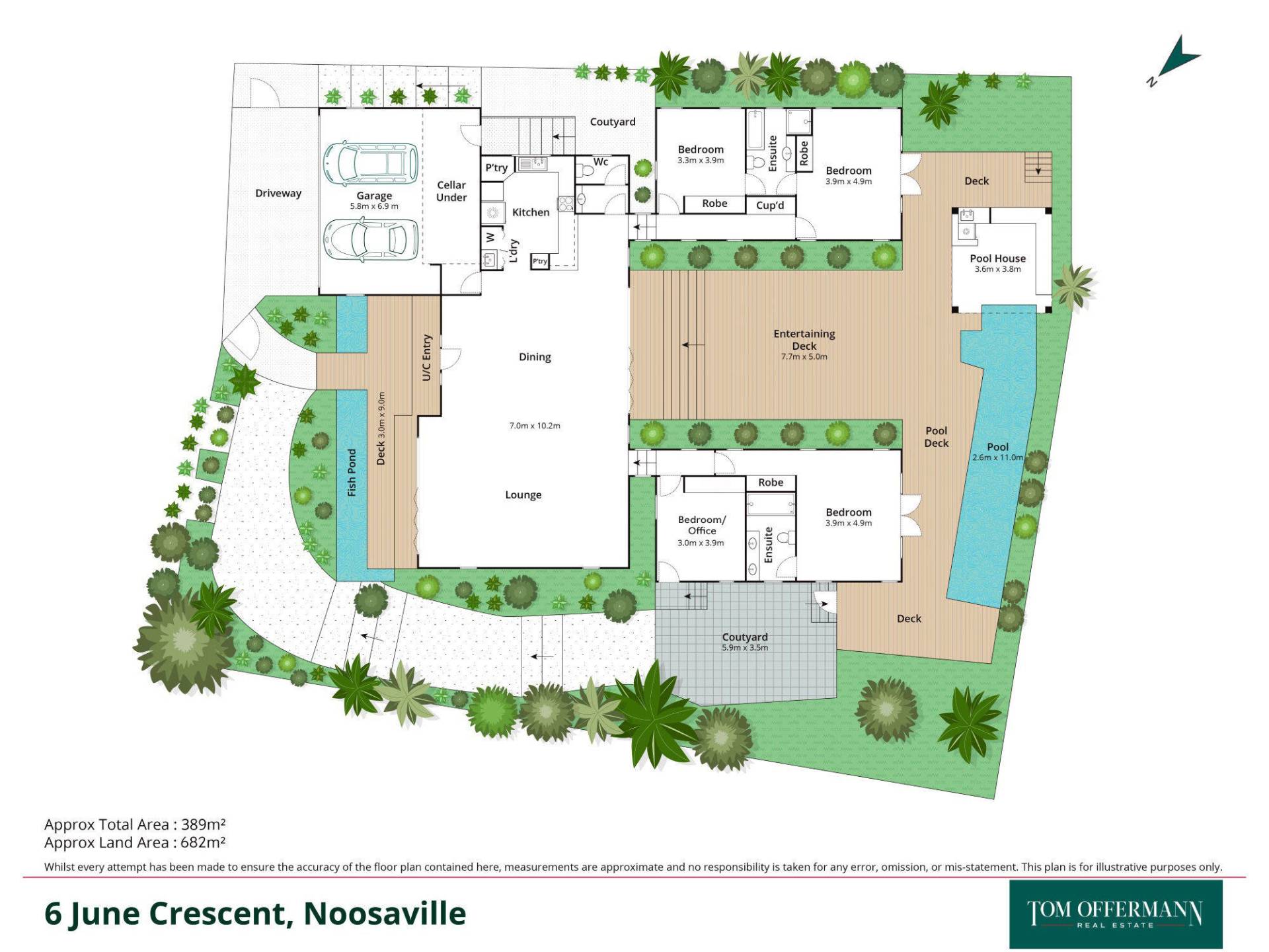 There is internal access from a large automatic door garage with a recessed nook perfect for the boards, bikes and scooter. A great feature is a checker plate metal hatch in the garage floor with steps down to a large head height concrete cellar perfect for storing your favourite vintage. The design of this pavilion home delivers a delightful separation to bedroom wings, whilst maintaining easy access to the full width deck and the solid timbers pillars of a pavilion set up with refrigeration and built in lounging facing down the length of the pool.