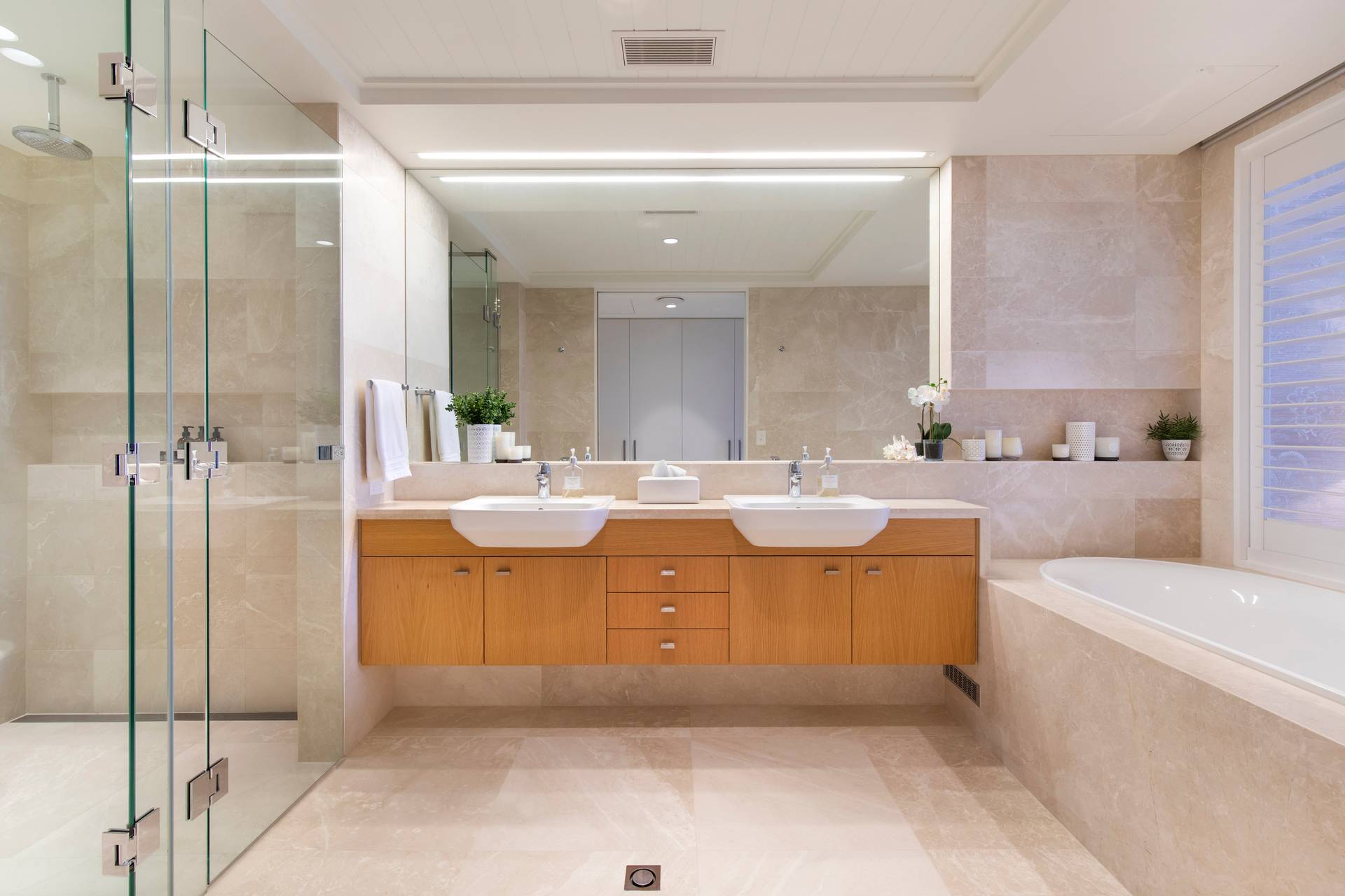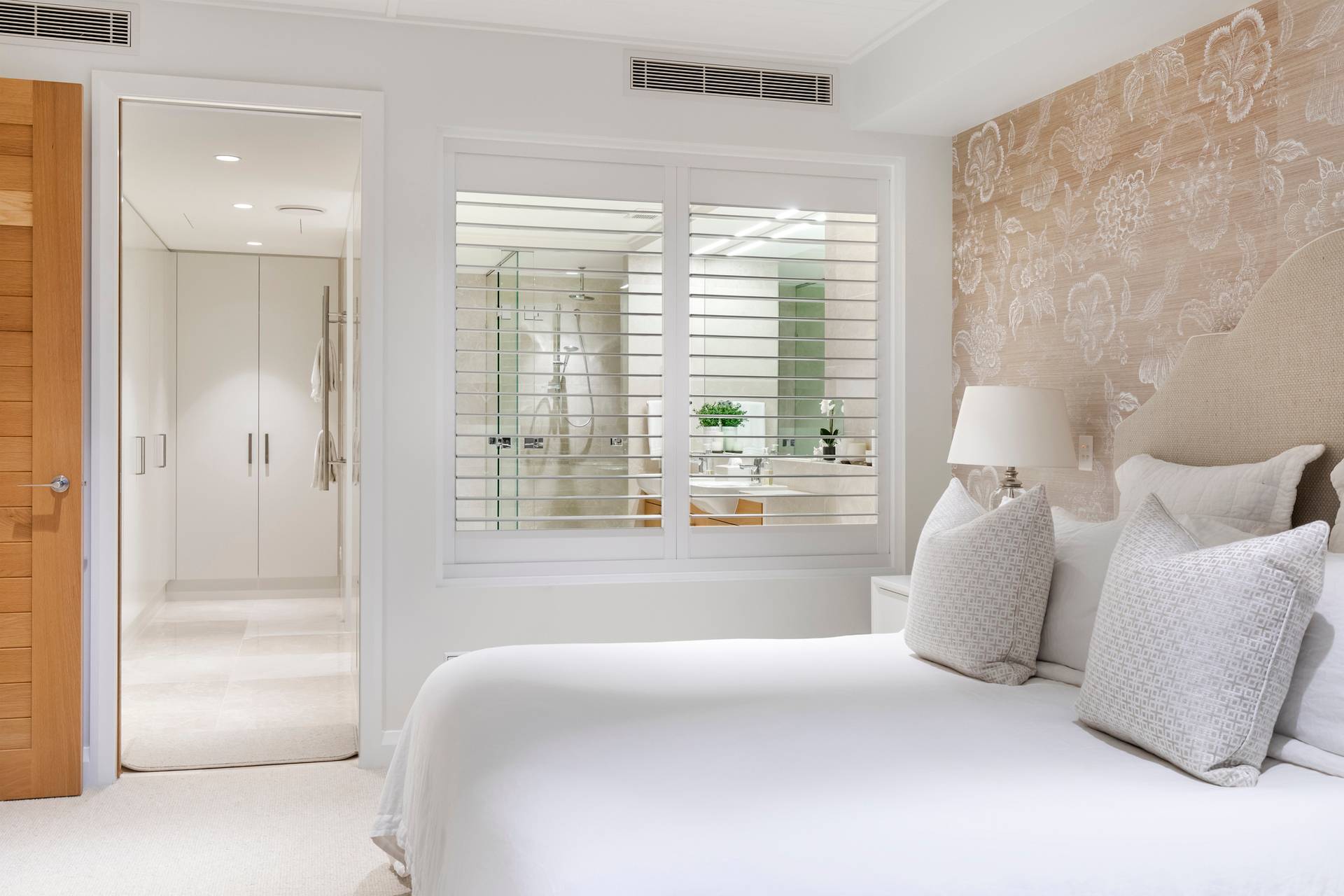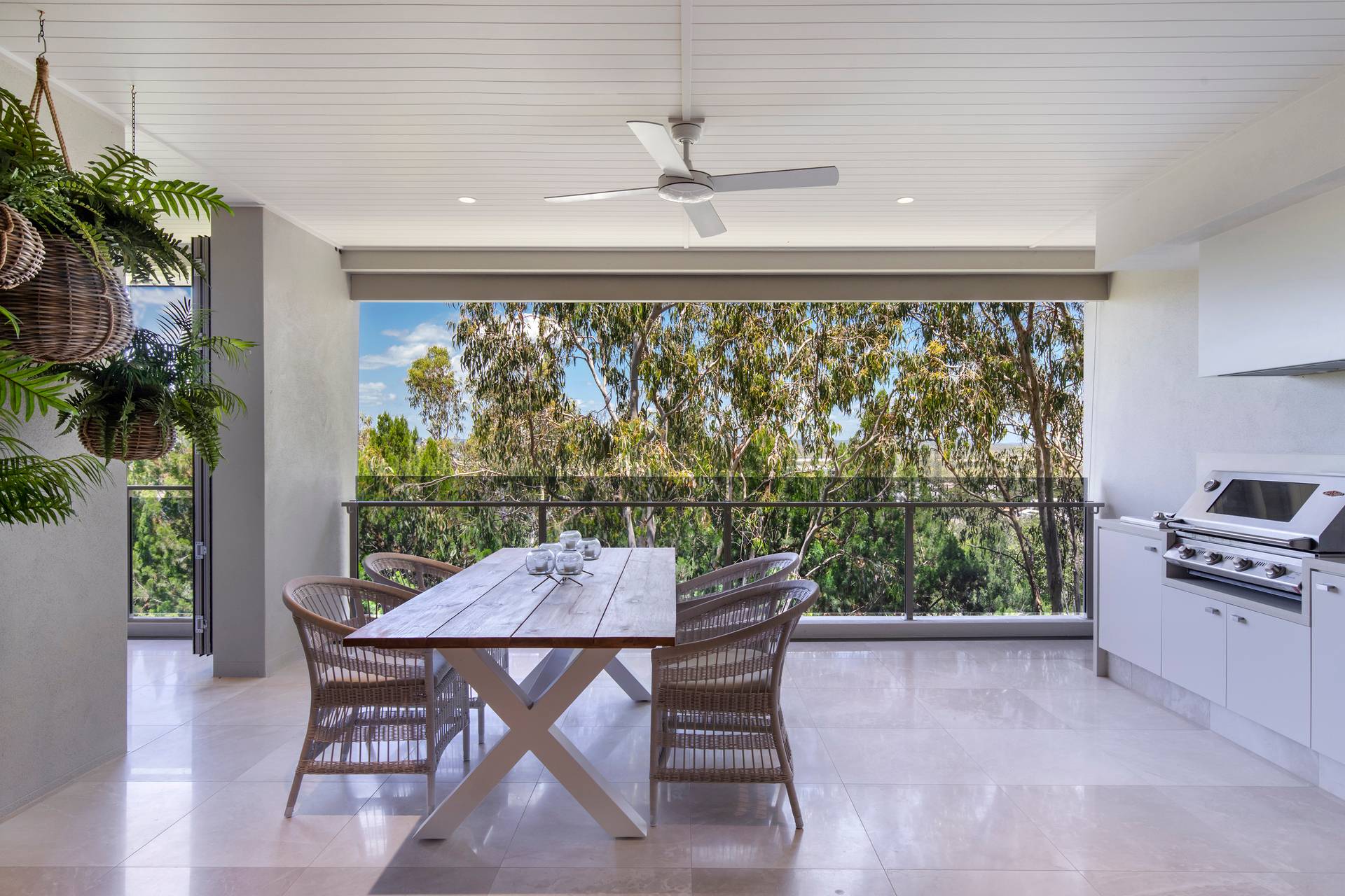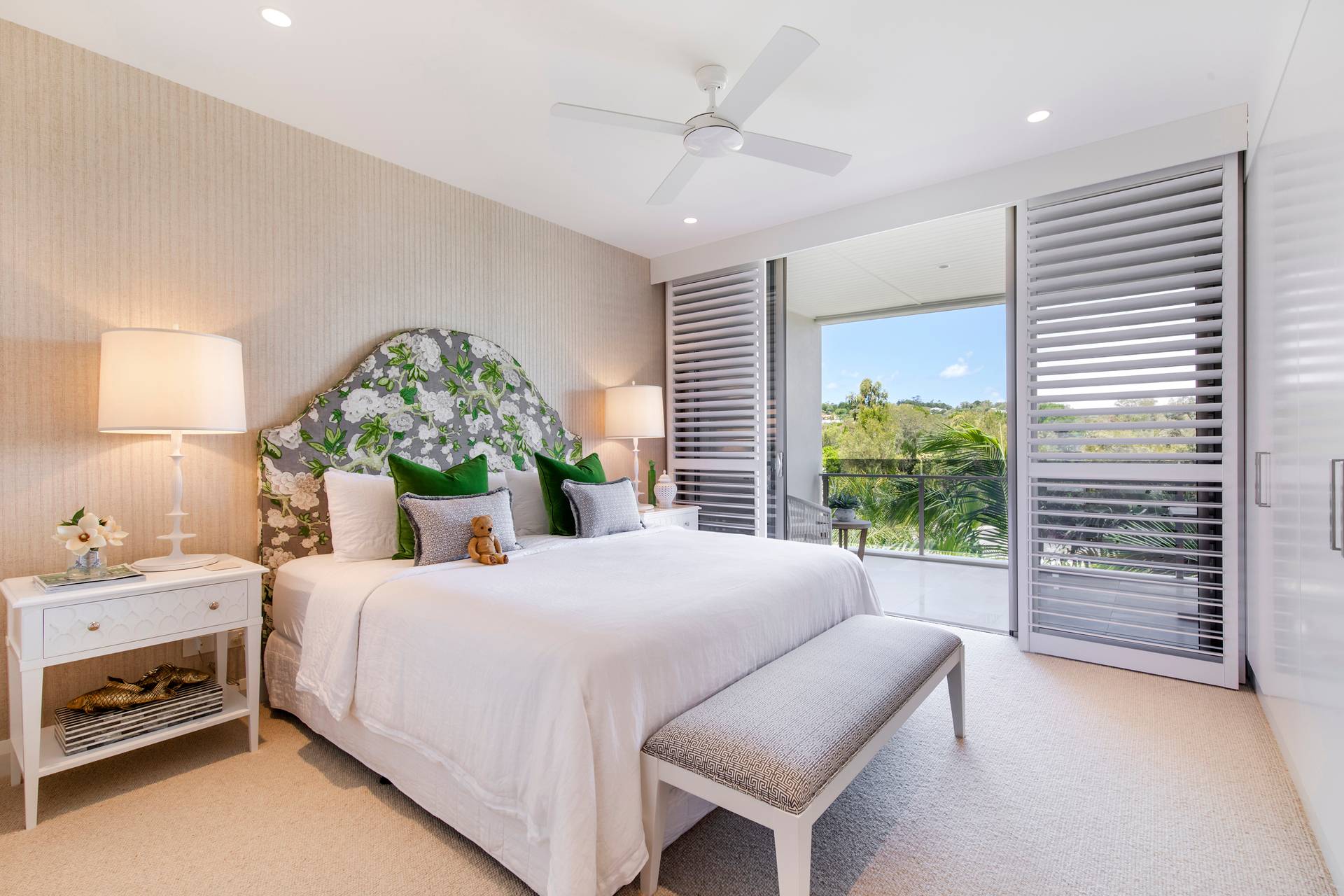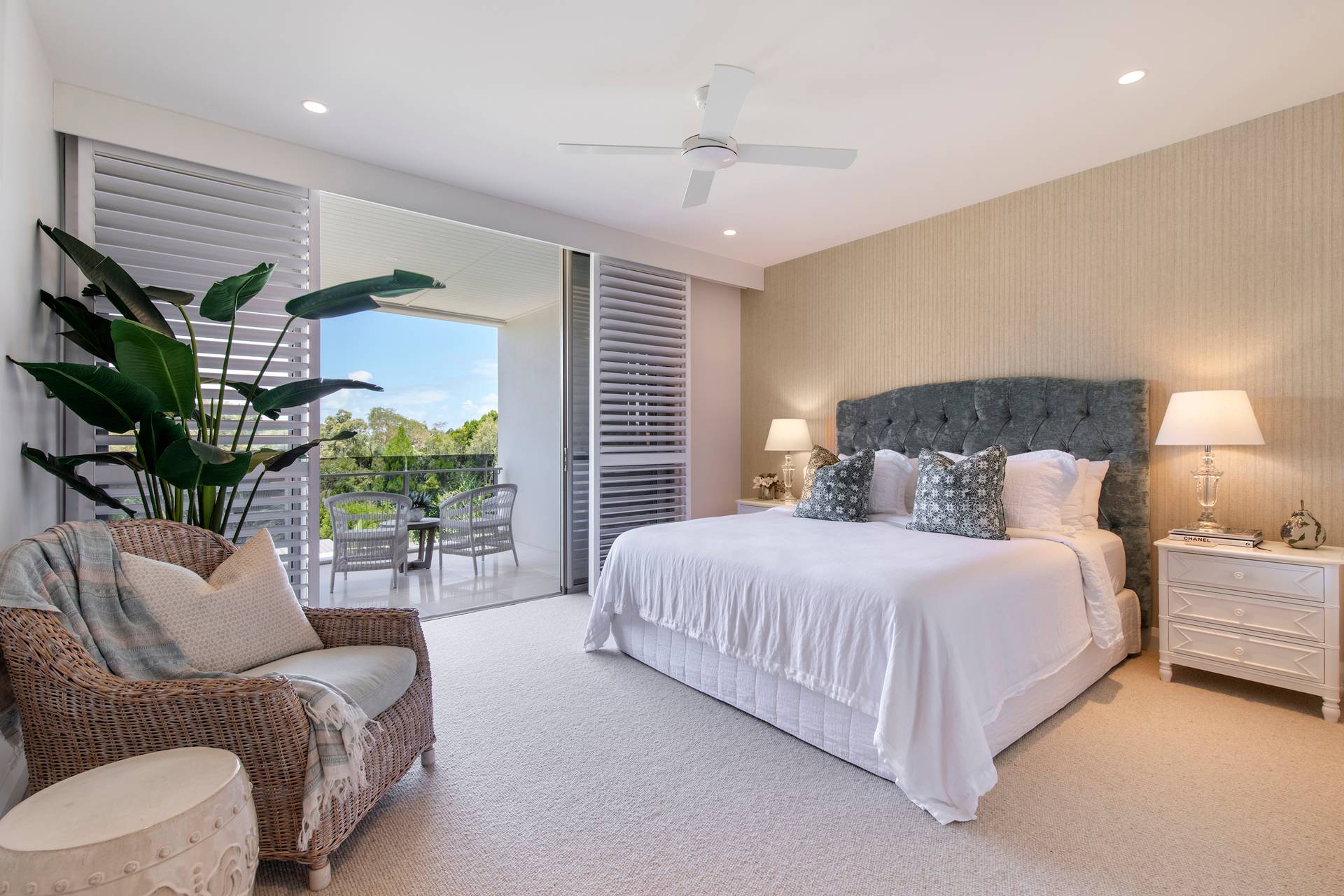 To say the master bedroom with oversize ensuite is as sumptuous as a 5-star hotel room is an understatement, as are two guest bedrooms with sliding doors opening onto a large balcony which looks over the stunning pools and bush land beyond.