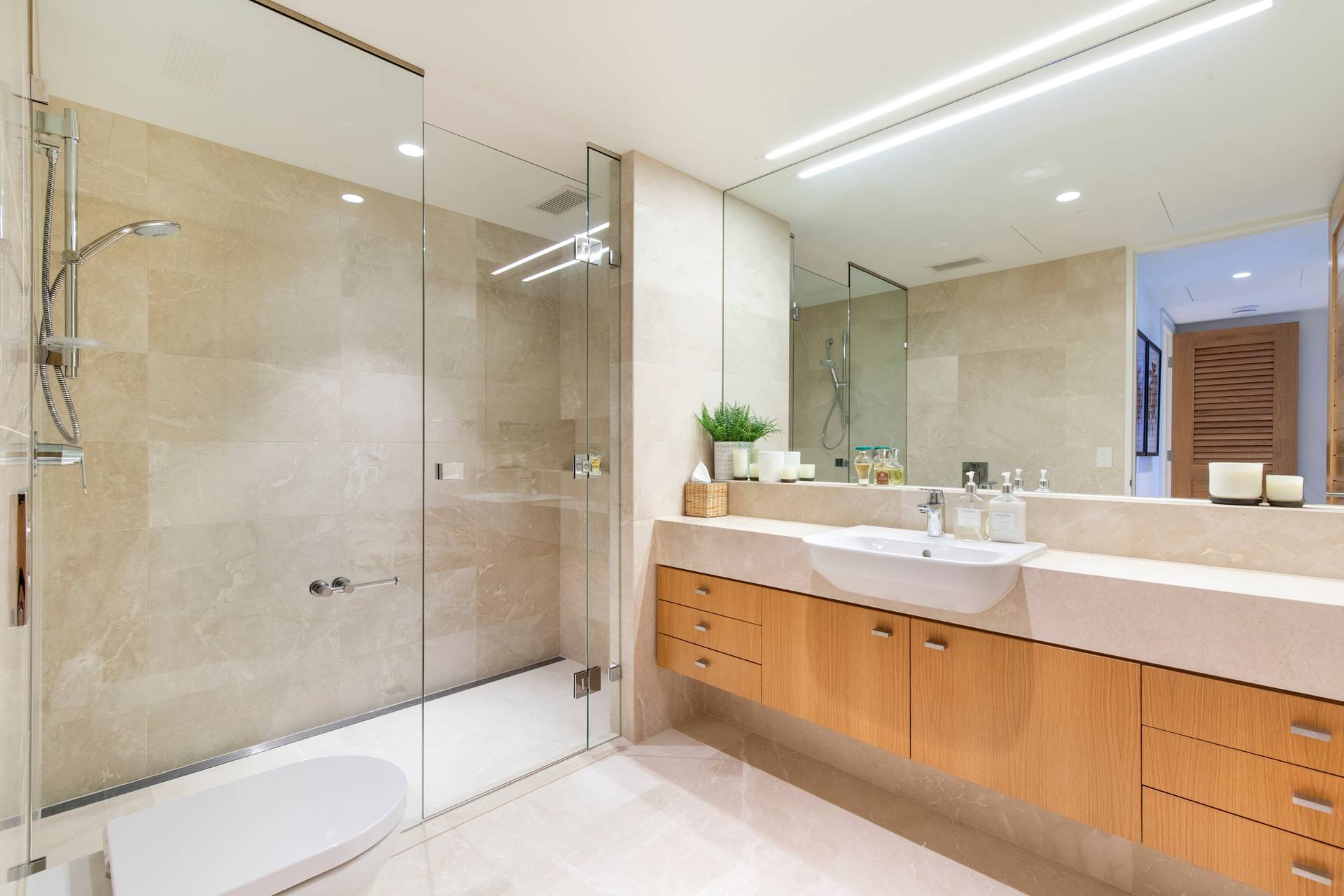 Alfresco living is synonymous of the space throughout the apartment which is generous to a fault, with fluidity inside and out. High VJ profile ceilings and marble-tiled floors complement the relaxed ambience. A large partially enclosed balcony has an outdoor kitchen with integrated BBQ, wok burner, Fridge and sink.