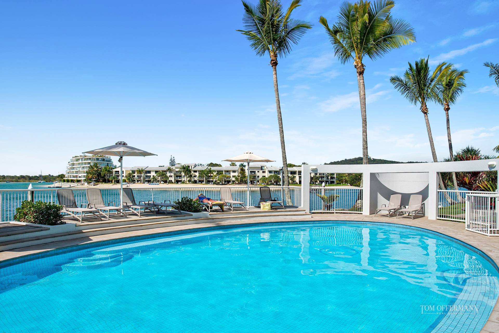 Ideally located north facing on the sandy shores of Noosa river, just a few steps away from the Noosa Pacific resort's excellent facilities, much of your time will be spent by the heated pool or fishing from the jetty.