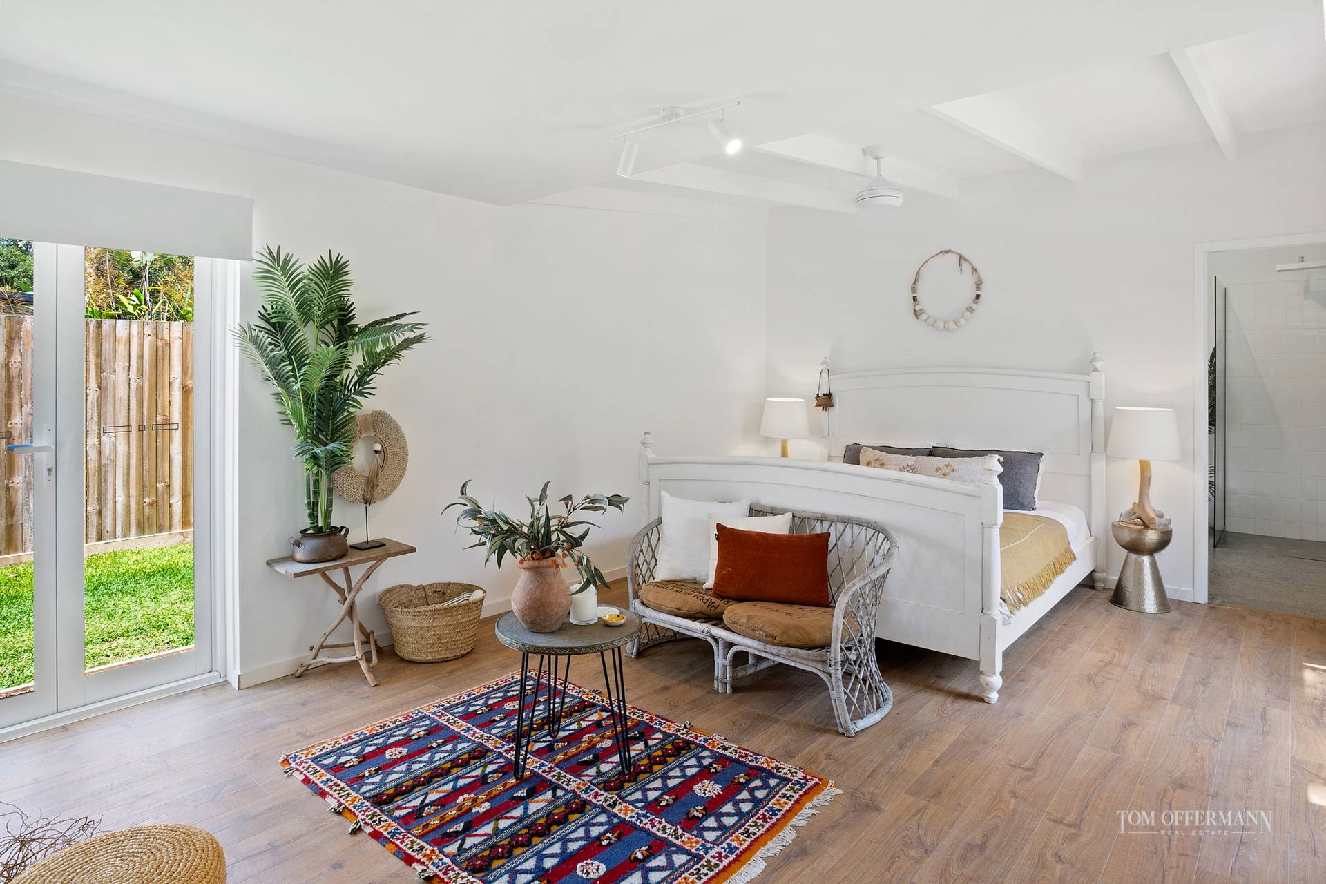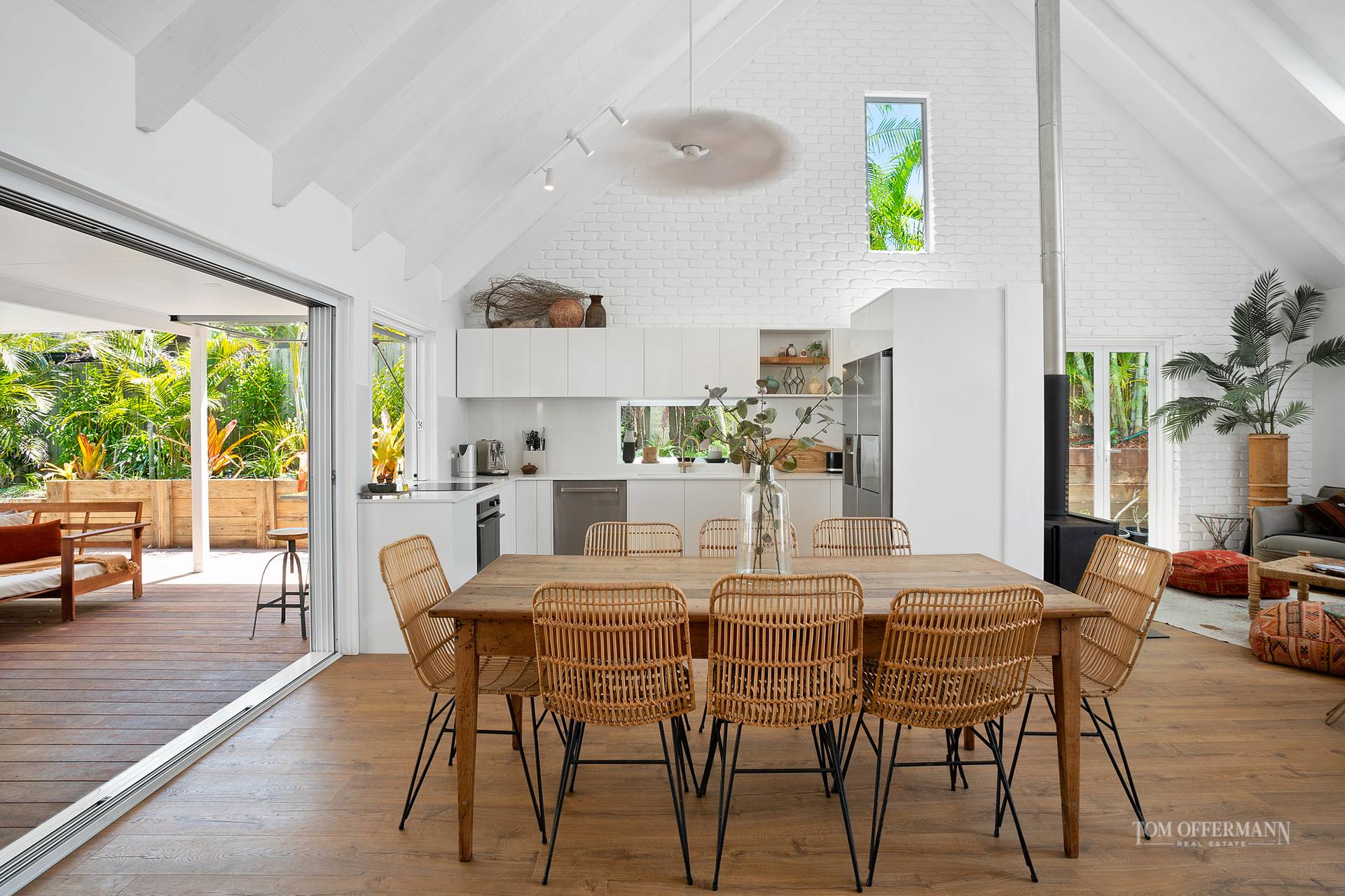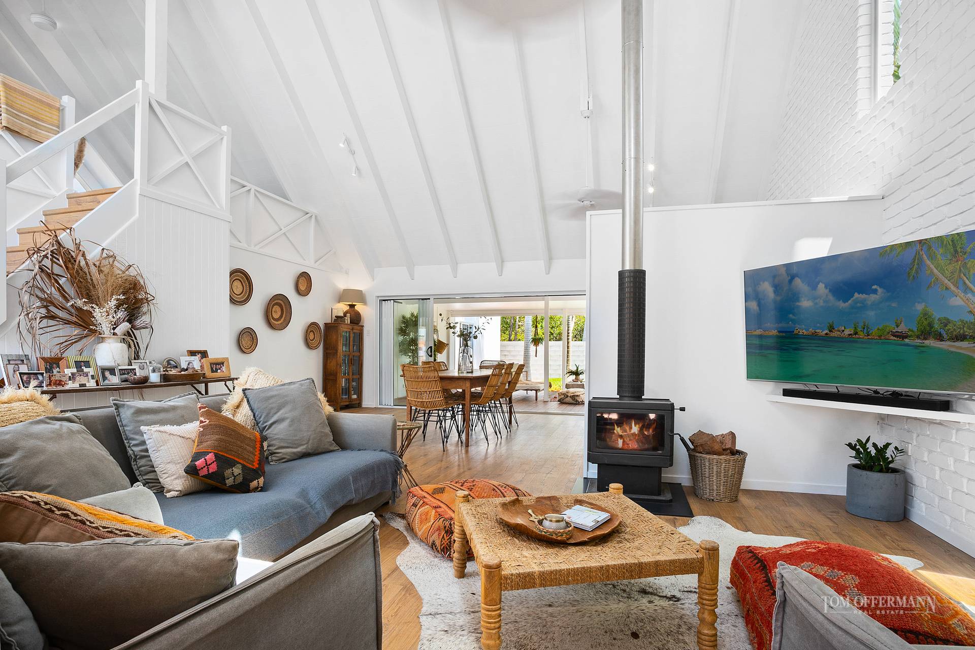 Abundance of natural light, sun and the sea breezes filter through the many windows and french style doors perfectly positioned around the place. The crisp white walls and raked ceilings create a feeling of space and being able to breathe.