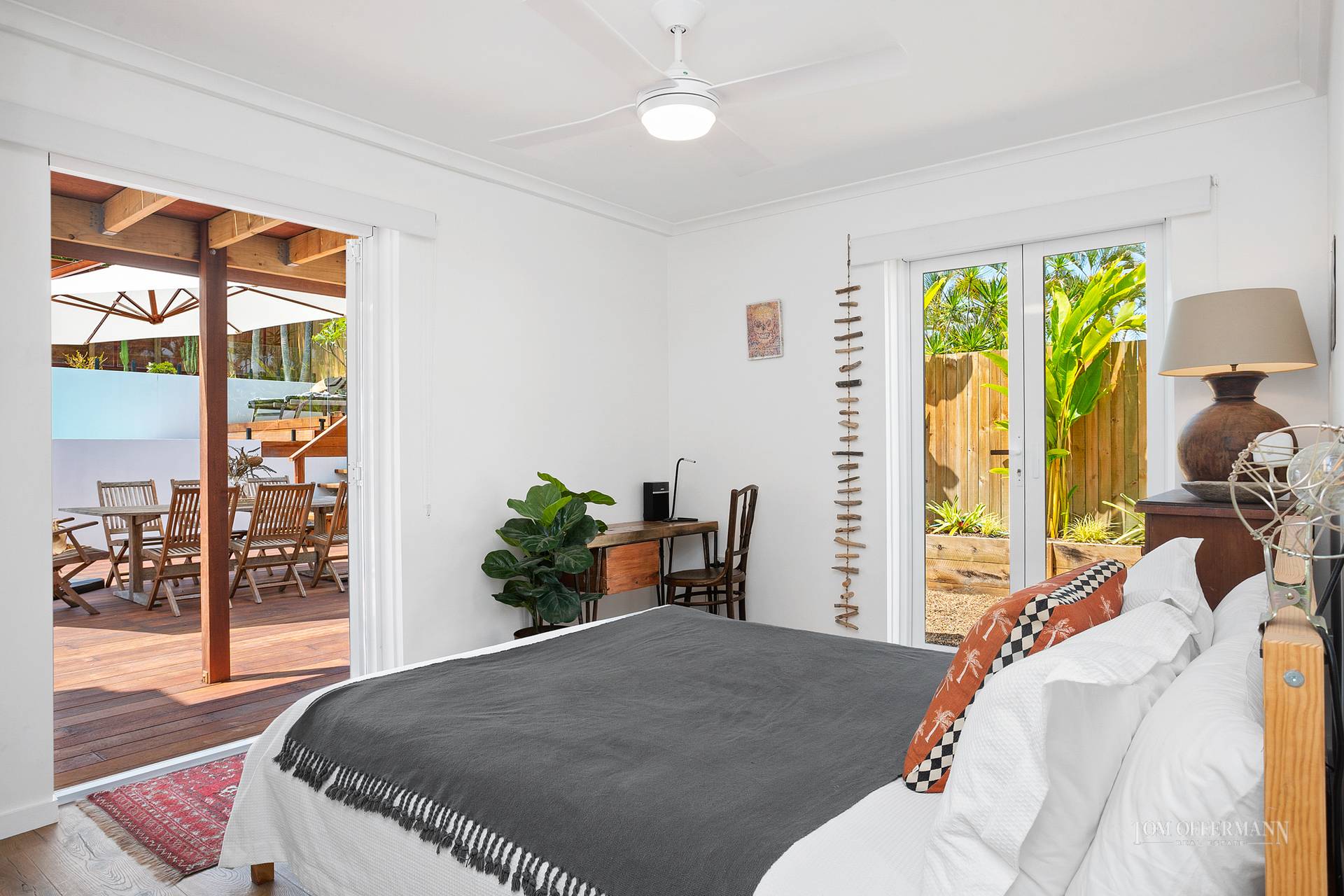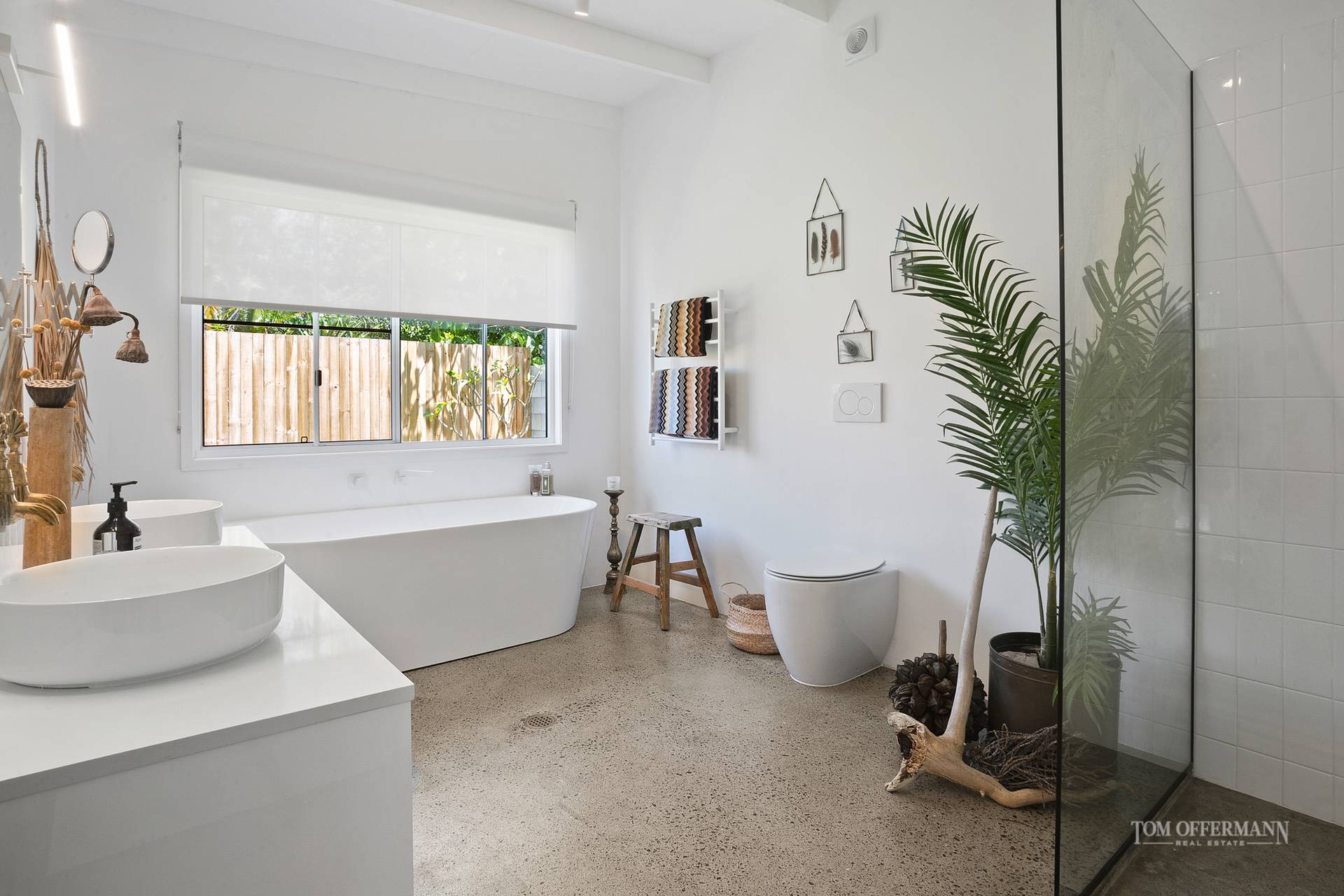 There other two bedrooms are located in the main area of the house and both of these have their own double doors that flow directly outside and onto the large entertaining deck and easy access to the second bathroom which has been stylishly fitted out in soft grey and white.
