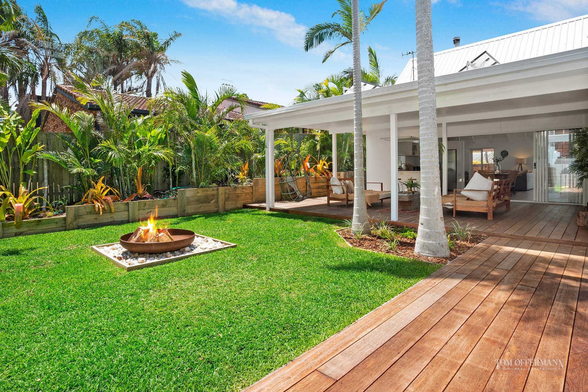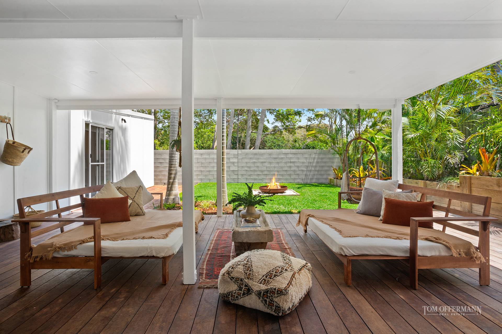 To the rear is a gorgeous undercover entertaining area this space offers a wide and inviting lounging deck area its surrounded by tropical gardens and large grassed area, there is built in bar fridge and wiring for outdoor TV. This is the perfect space in summer to relax with a book or wine or in winter to cozy up around the fire pit. The level grassed area is perfect if you have a furry friend and is lush, healthy and soft.