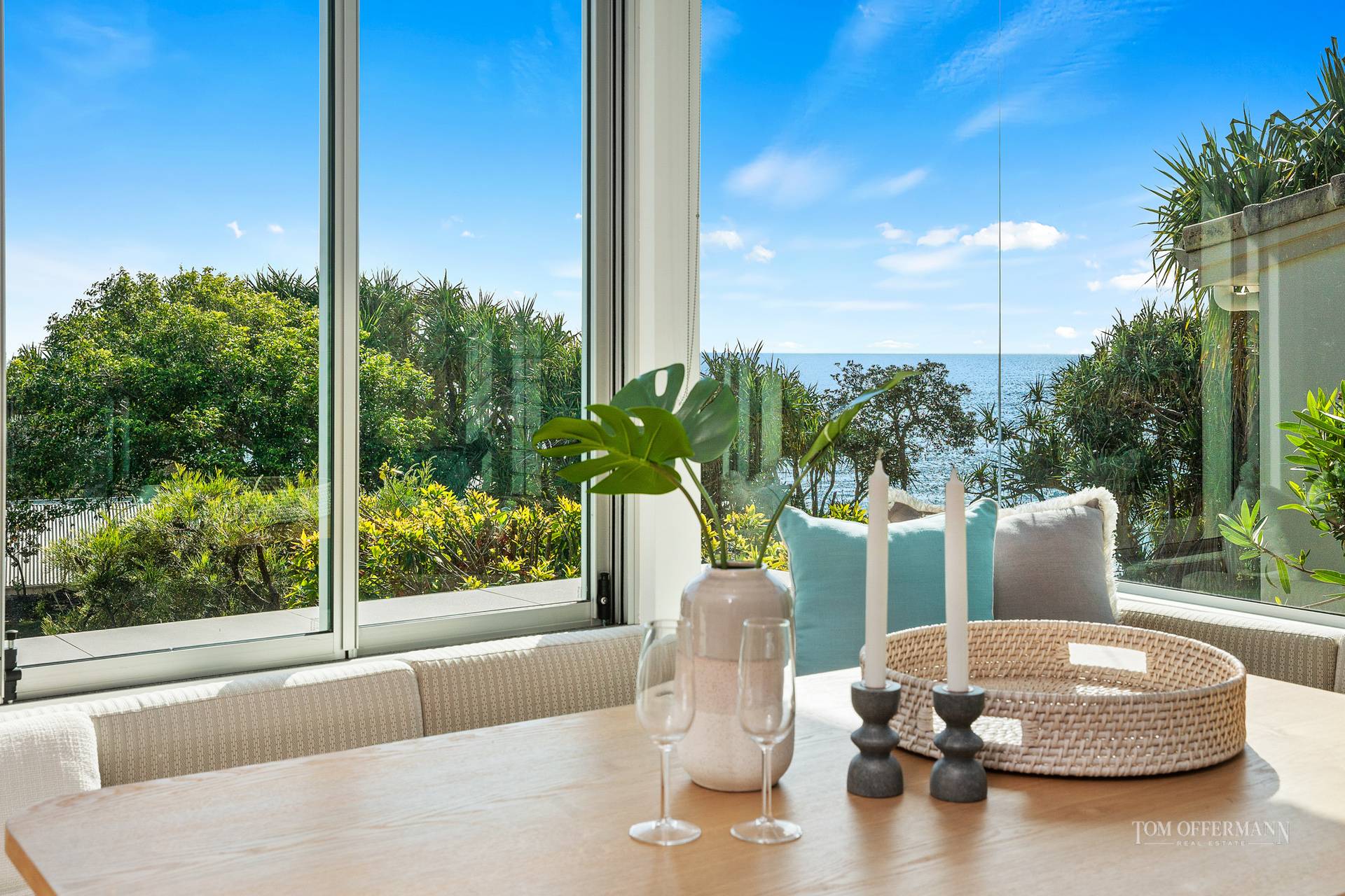 Salute the sandy beach at your feet and celebrate a distant horizon from the elegant confines and paved terraces of this superbly prepared beachfront abode. The location is dress circle and the curve of the beachfront crescent provides the solidly constructed glass enclosed residence with a fabulous north eastern aspect to the Coral Sea.