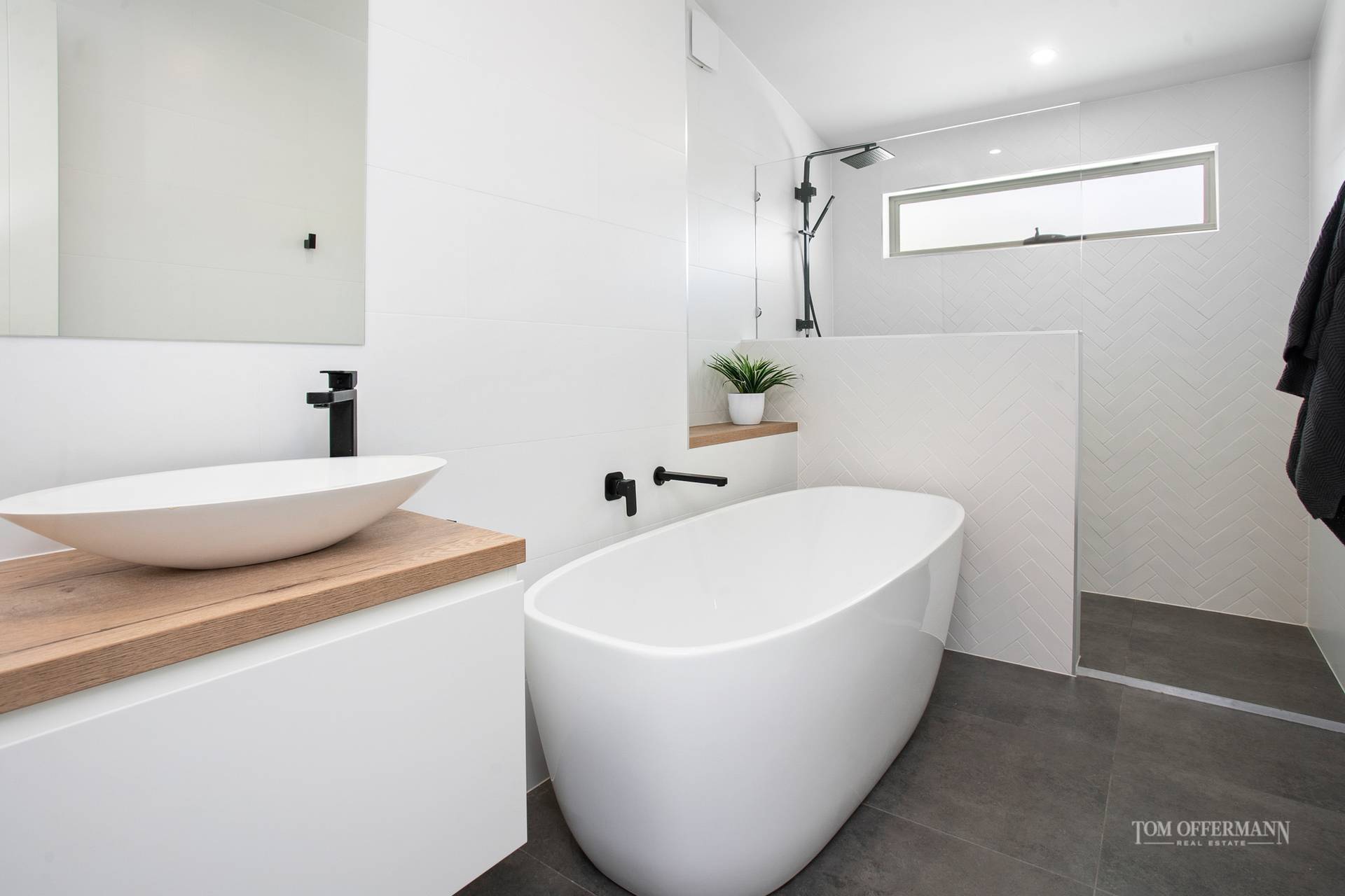 Three of the four bedrooms are located on the entrance level, including the peaceful master suite with luxurious ensuite with a crisp white herringbone tile and large bath to relax and unwind. There is also large walk in robe. The other two bedrooms are a great size and offer easy access to the gorgeously finished 2nd bathroom.