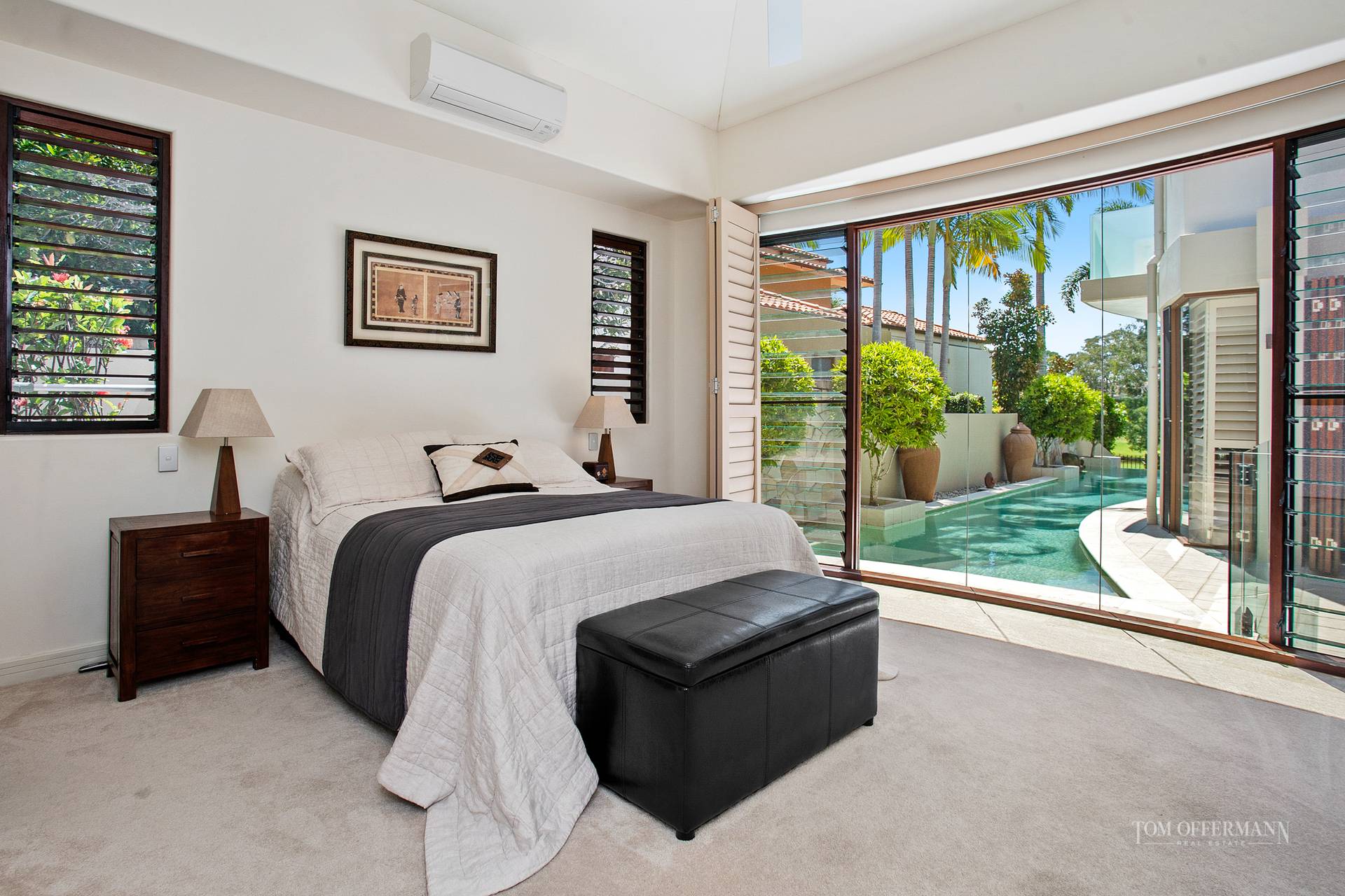 If an enduring love for living in a seriously classy residence near Noosa Main Beach in the idyllic sub-tropics, coupled with the unparalleled lifestyle of having the signature 5th hole of a world-renowned 18-hole golf course almost in your garden, sound like a double eagle, your kind of paradise is here. The 20m golf course frontage seemingly melds into the championship standard Graham Papworth designed course with its nine spring-fed lakes, 72 bunkers and abundant wildlife.
