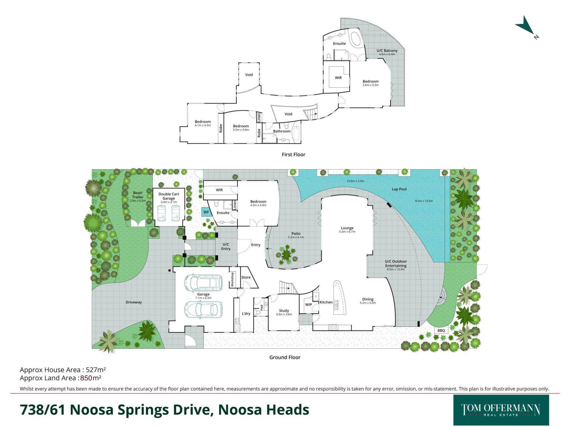 The main garage has epoxy coated floors, storage and workshop areas and there is a separate garage accommodating two golf carts and further storage. The landscaped low maintenance gardens are fully irrigated.