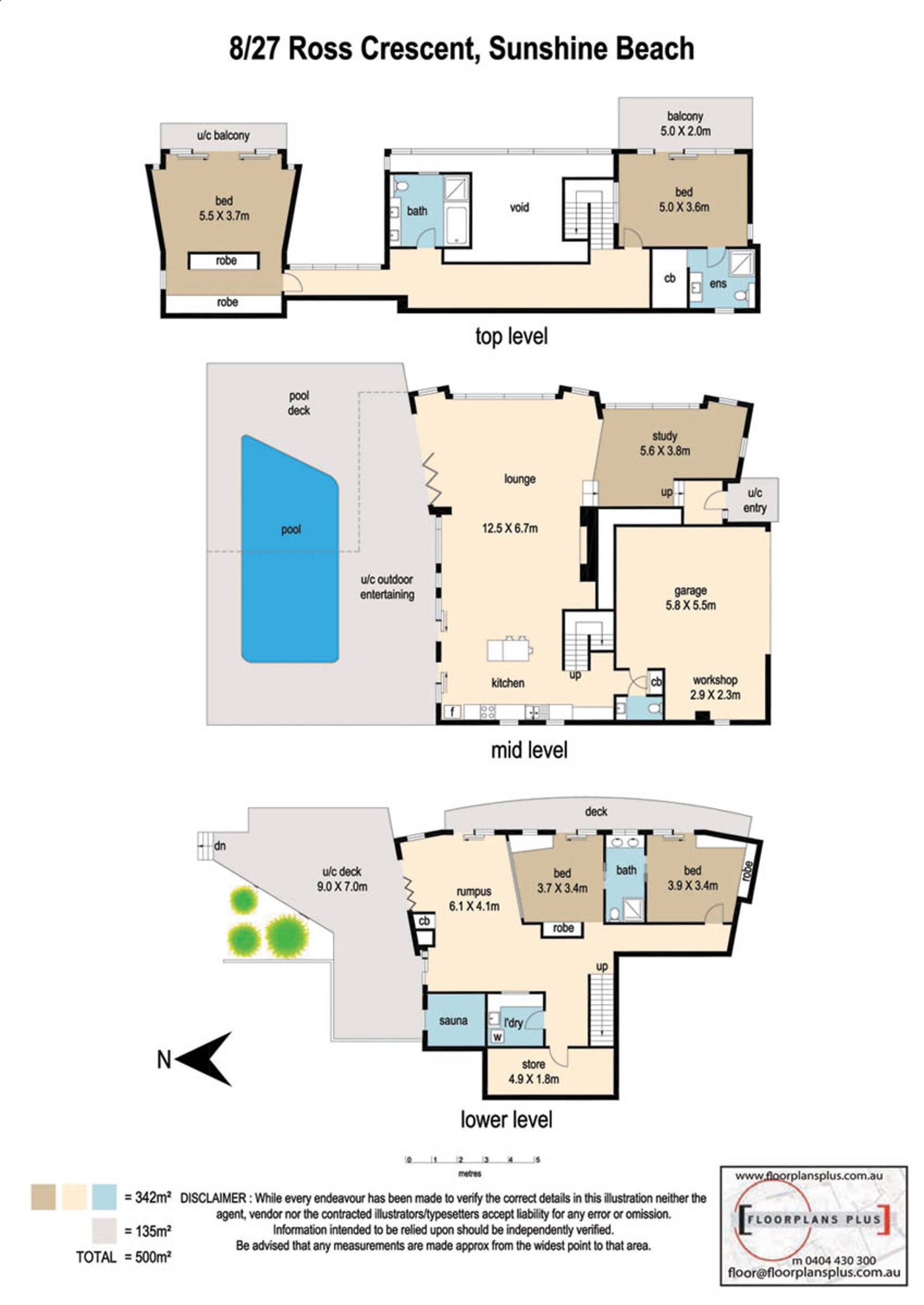 Interior size + decks: 500m2