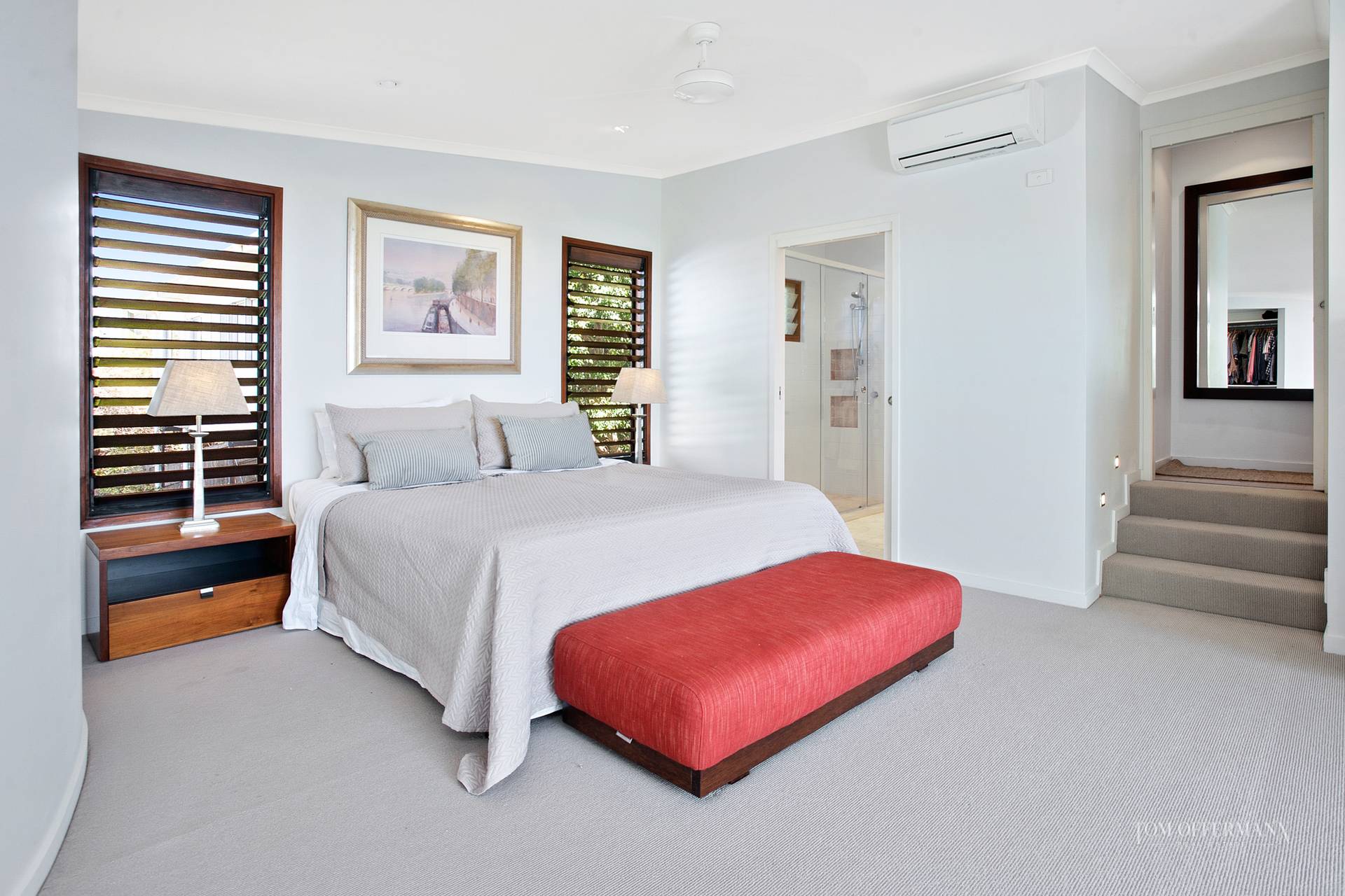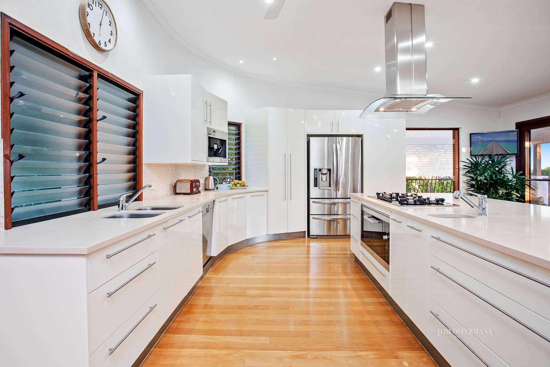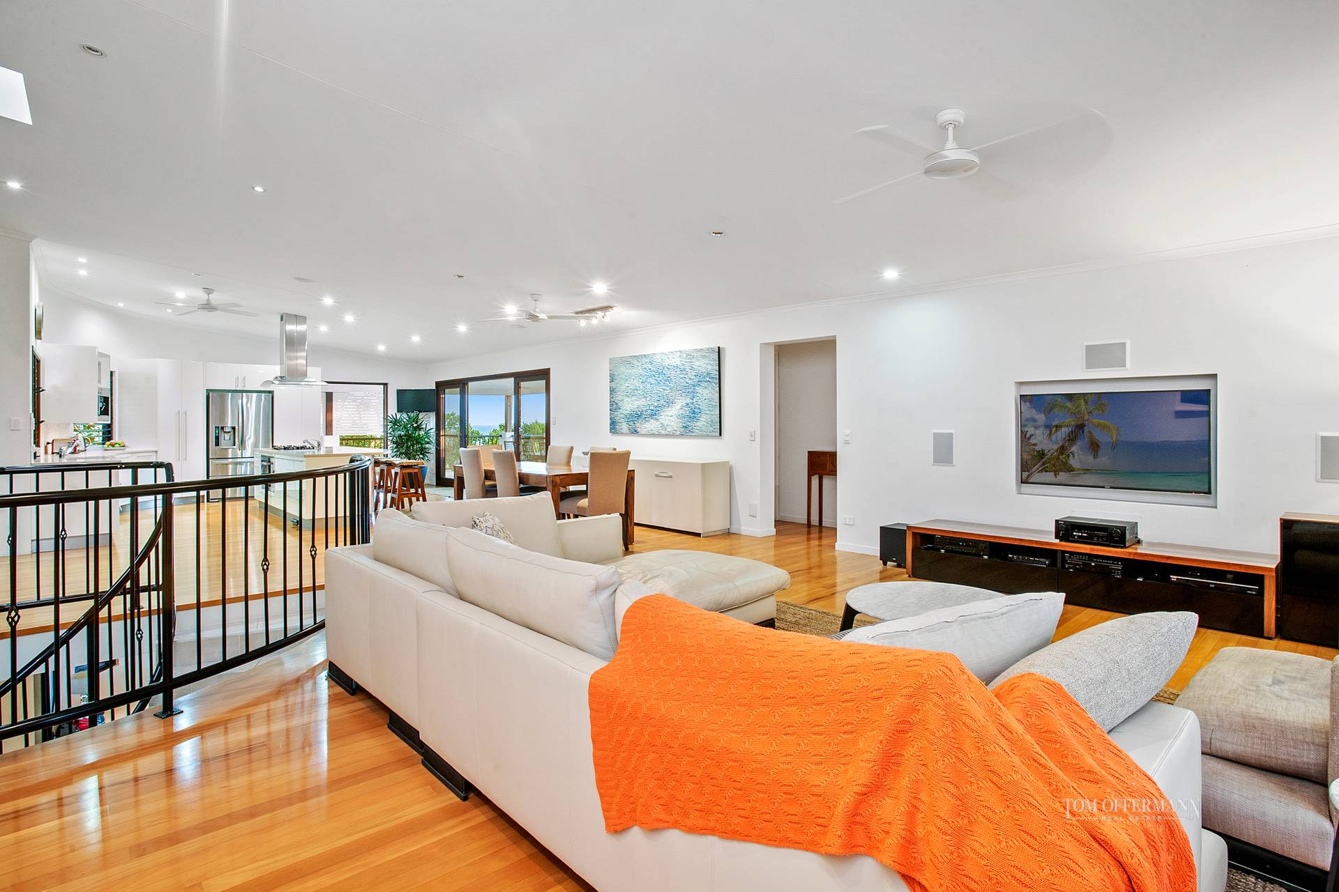 Custom-made doors, feel the ocean breeze, honey-coloured timber floors, curved wrought iron staircase and wide Coral Sea views, to realise it's the perfect design for this top beachside location.
