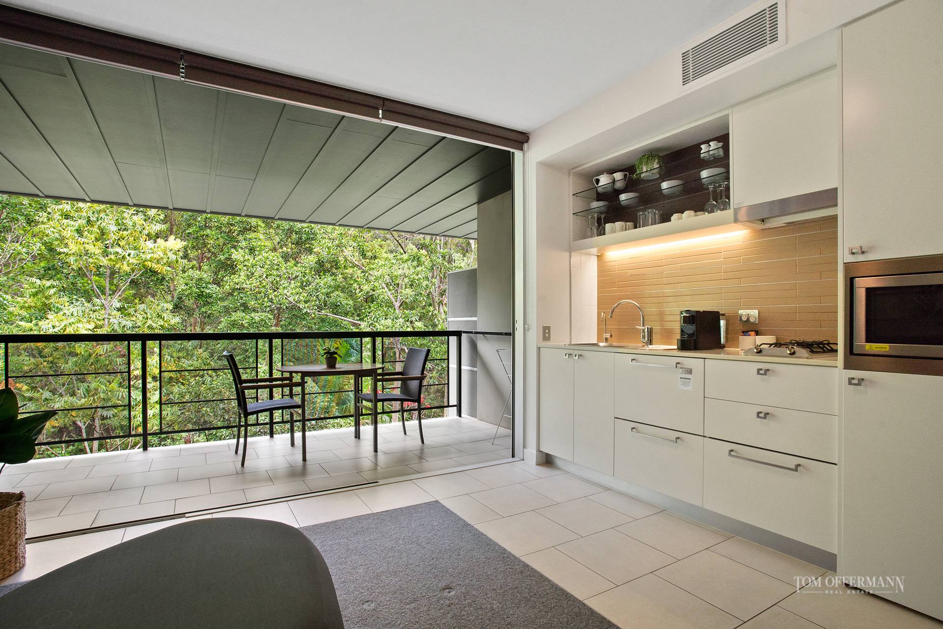Enjoy chirping lorikeets and occasionally spot cuddly koalas, whilst sipping sundowners on the north-west facing private, oversized balcony. It runs the width of the apartment and makes a seamless transition from the open plan living and dining spaces.