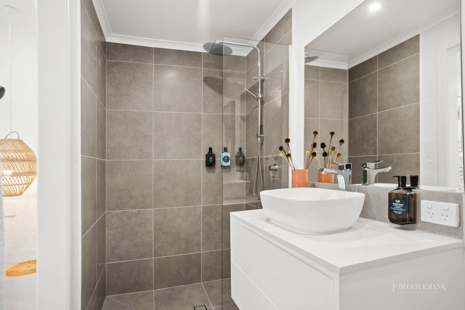 Wake up to the sound of waves washing onshore, prop at the balcony bench/bar, sip tea and be transfixed by the ocean views as rich sunrays rise out of the Coral Sea. Time to grab board, sunscreen and kids and head just 200m via the access path, to toes-in-the-sand.