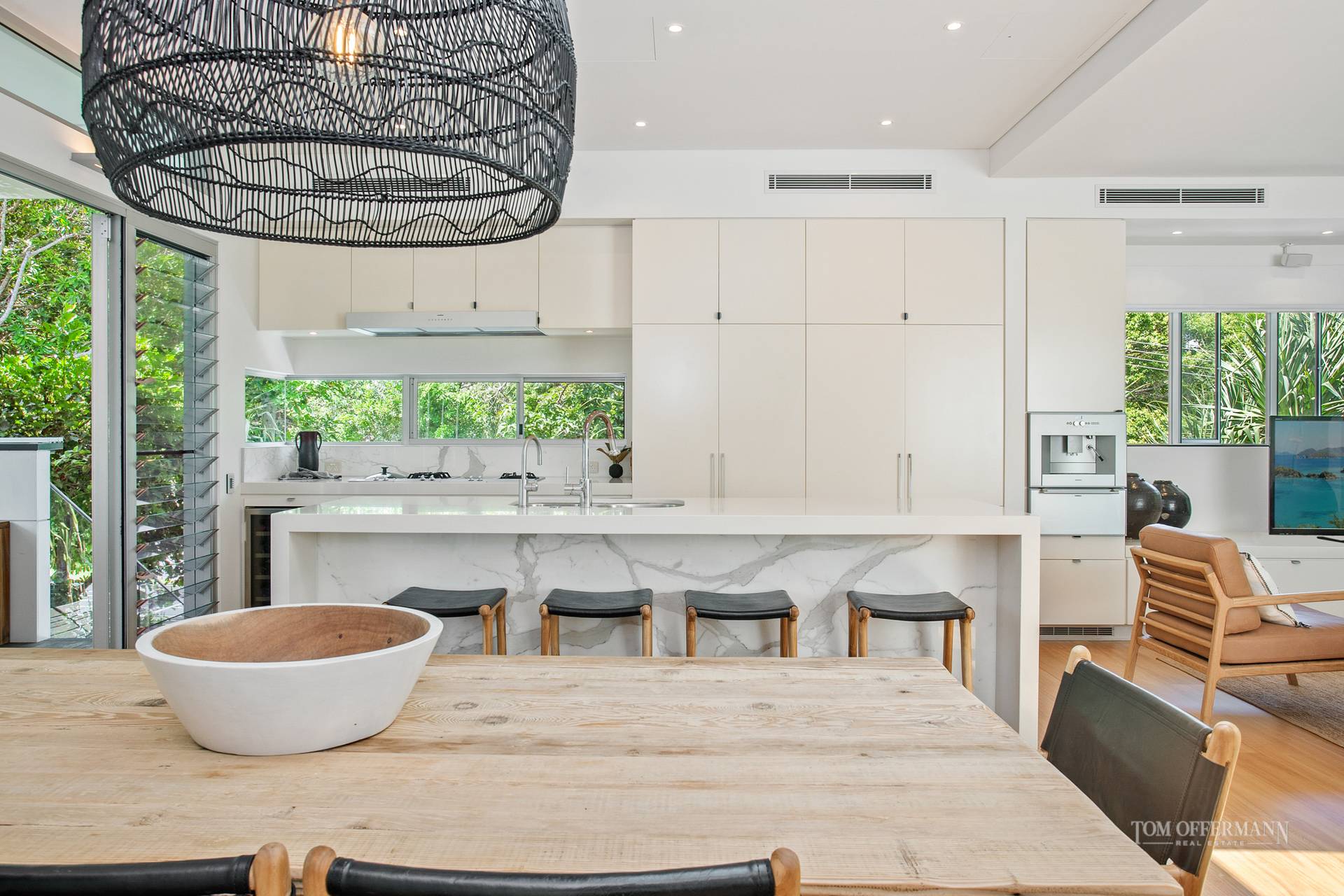 "The ultra-chic residence is in the heart of Sunshine Beach," says Tom Offermann Real Estate agent Rebekah Offermann. "Imagine waking up and looking out through the terrace to the trees, hearing the sound of the surf and knowing it's just two blocks to Duke Street, the vibrant village and a further block to the patrolled beach."