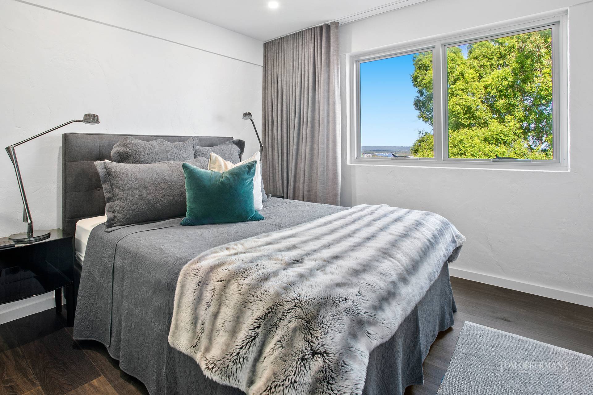 On arrival you're drawn across the living space to the deck, where you'll stop, rest your hands on the balustrade and stand mesmerized. The entire bay, framed by beaches, spreads out beneath you. Of an evening, a carpet of sparkling lights reminds you Hastings Street's a short stroll away.