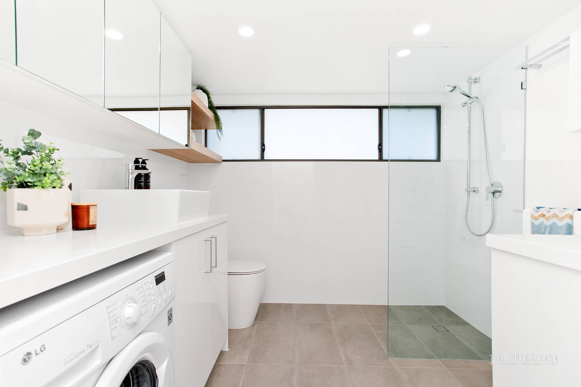 Flooring: Engineered Weathered Spotted Gum; retiled verandah.