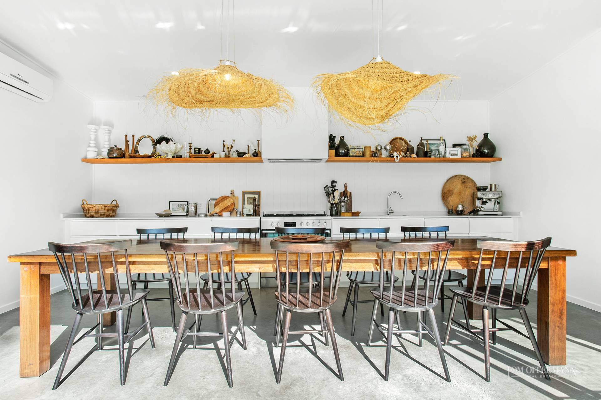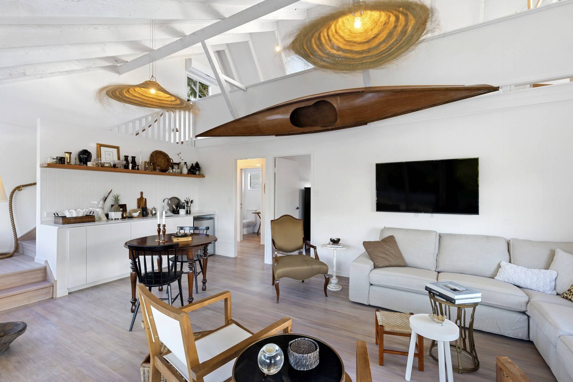 Behind the original 1974 beach shack facade, 'Barra' the bespoke quintessential coastal home has come to life through an impressive transformation and a modern extension. Skillfully blending style, quality and practicability, the well designed floor plan effortlessly responds to a modern family's requirements with separate wings, connected by the central kitchen area, overlooking the lush grounds and Palm Springs inspired swimming pool.