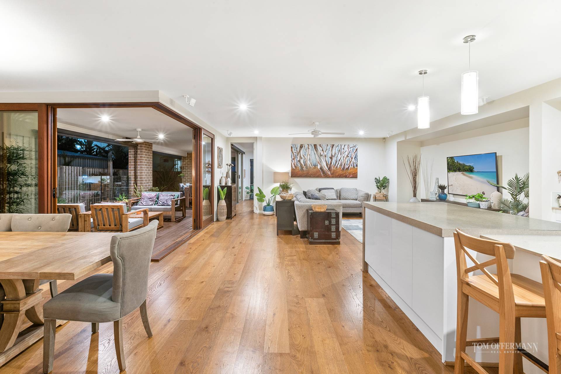 Tucked into a quiet cul-de-sac on the headland of this laidback exclusive beachside pocket is this huge family residence. The distinctive exterior suggests a touch of Melburnian quality, open the bold statement doors and see what really counts is the inside with multiple spaces on two levels. They exude functionality and keep on giving at every turn.