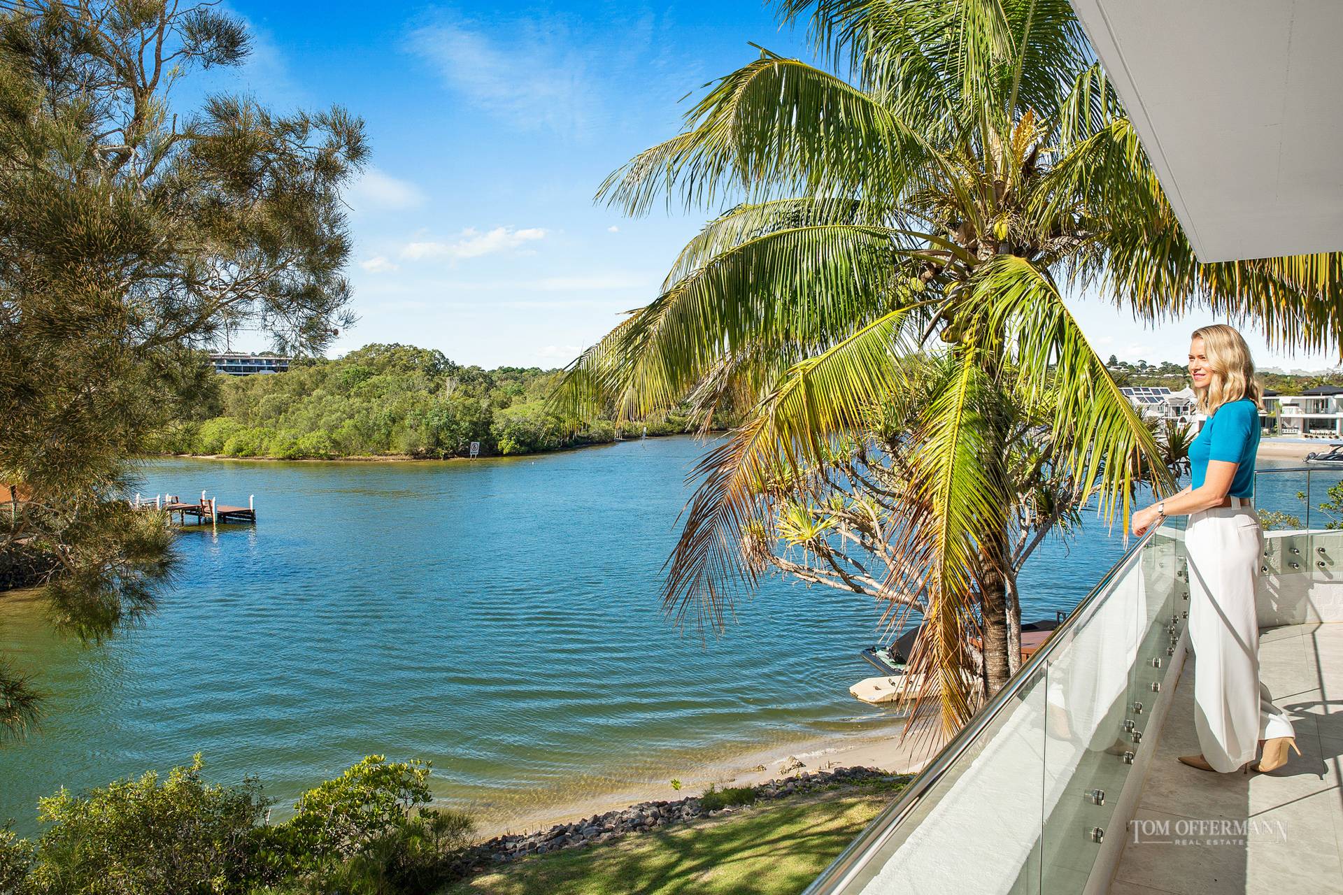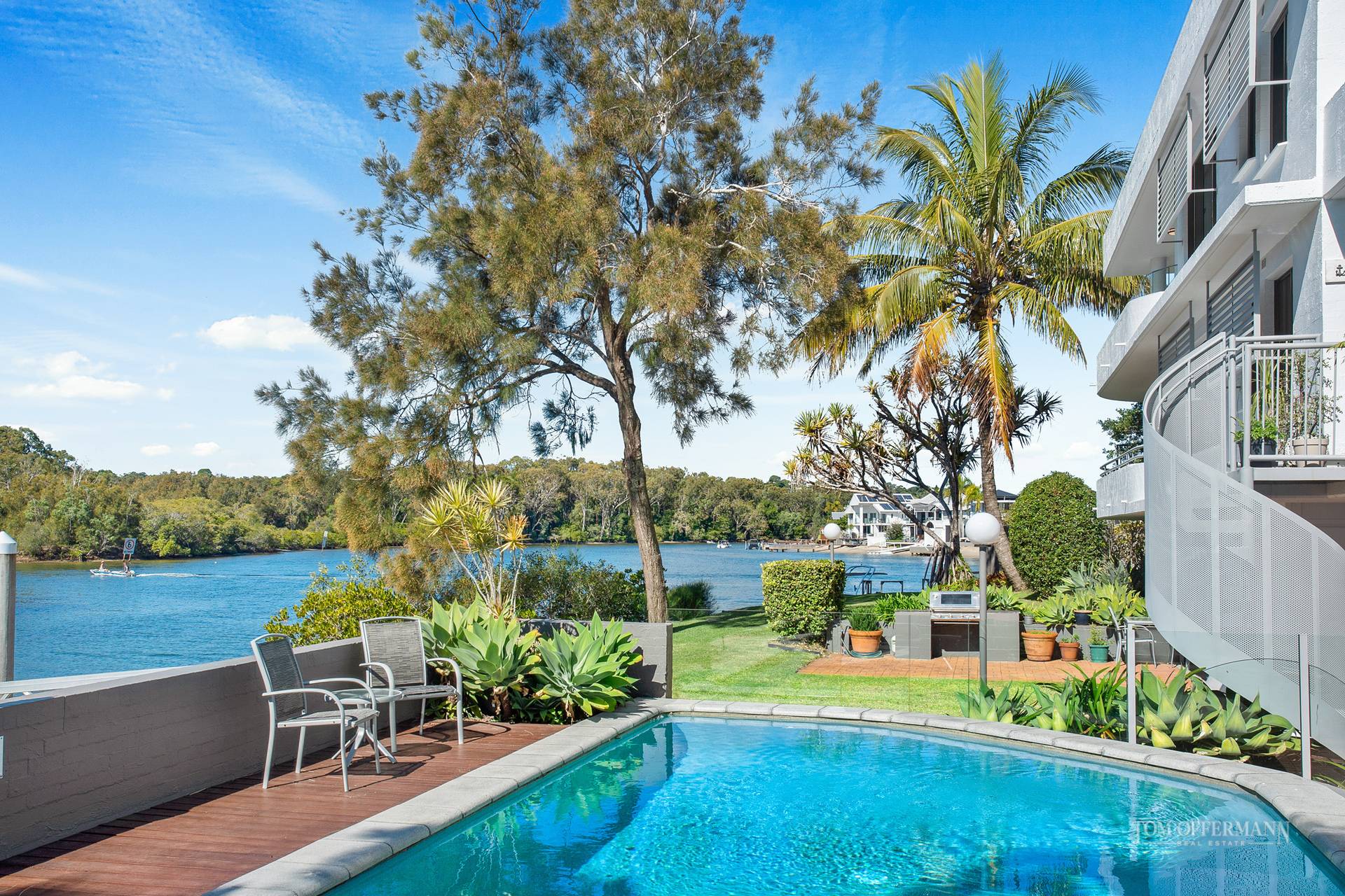 Look below. There is a jetty for tying up the tinnie or casting a fishing line, a lush lawn to lay out the beach towel after a swim in the resident's only pool or the clear shallows of the Noosa River. For the kids it's more about sandcastles, buckets, and spades on the white-sand foreshore.