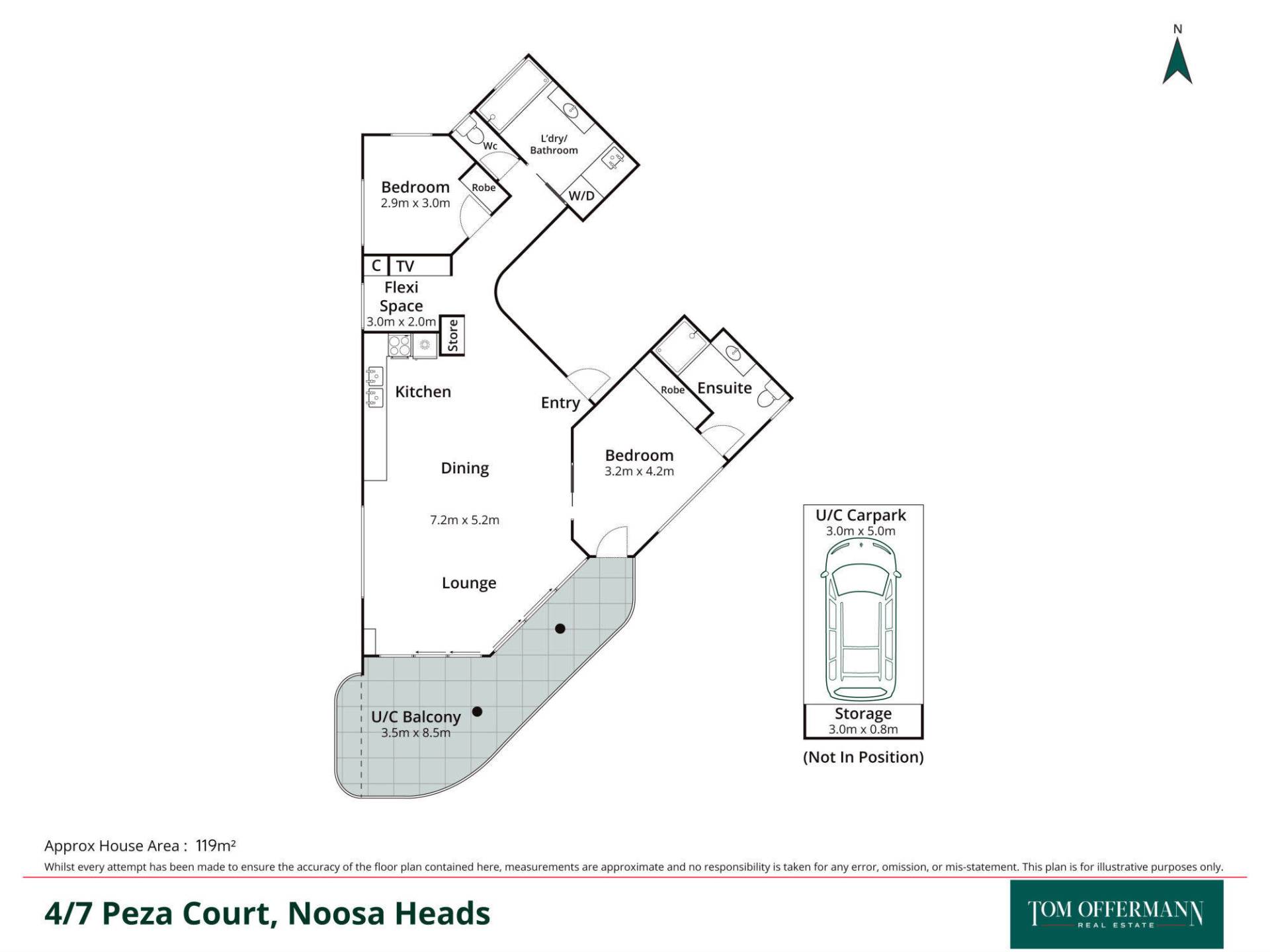 - Area: 119m2, including 3.5m x 8.5m under cover balcony