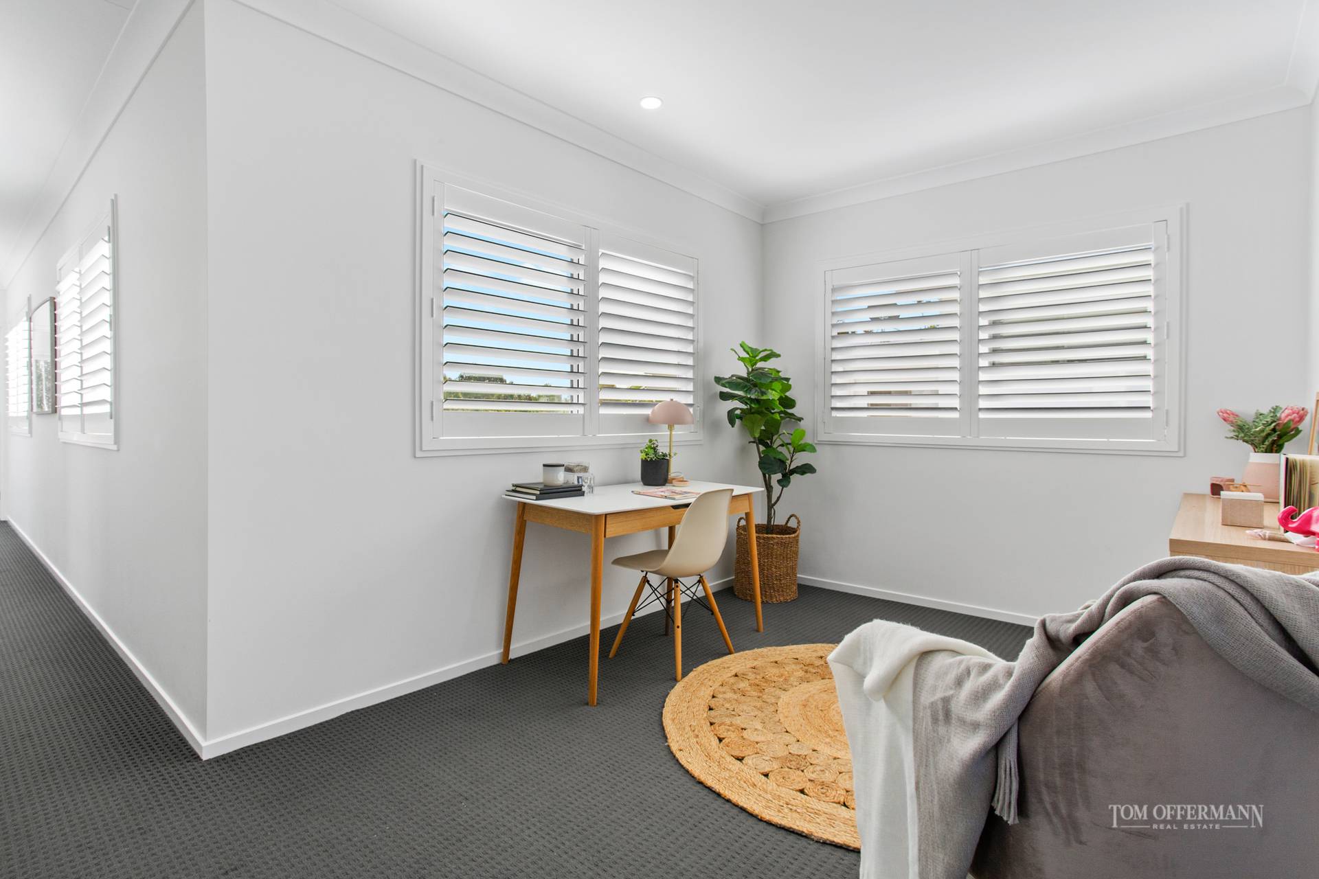 Complimenting the spacious contemporary kitchen is a full length caesarstone benchtop, walk-in-pantry and on-trend caesarstone splash-back. There are multiple living areas including lounge, media and an upstairs retreat. The office at the front of the home could also be used as a fifth bedroom.