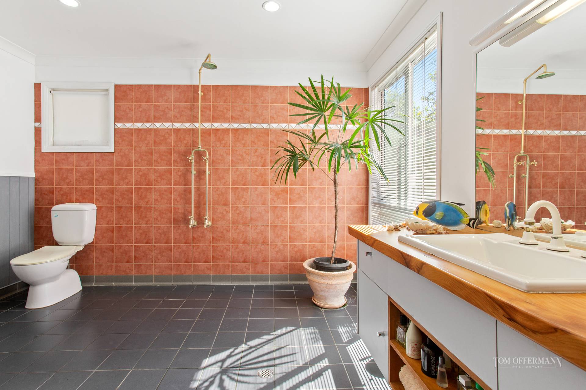 There are three bedrooms. All are reasonably sized with built in robes. The master bedroom has easy and direct access into the large bathroom that doubles up as main bathroom. The other two bedrooms are slightly set back from the Master bedroom allowing privacy for guests or family.