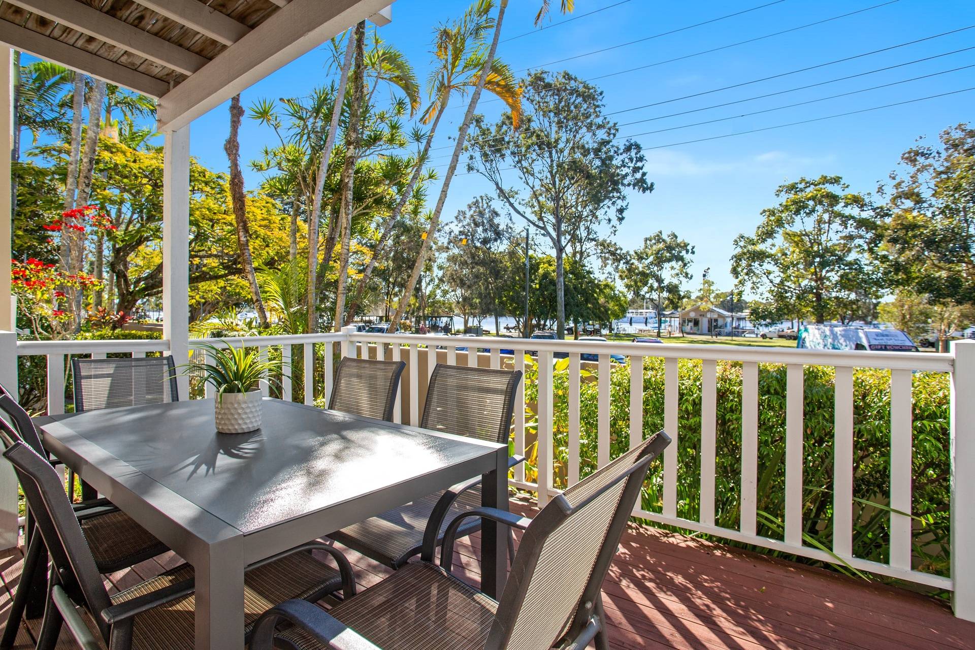 From both decks of apartment 1 your table faces straight across the park to the Noosa River. There's always something to watch; pelicans circling over head with their landing-gear lowered, couples walking their dog and stopping for a coffee at a riverside kiosk, families fishing, sail boats maneuvering around each other and of course, the explosive colours of a Noosa sunset.