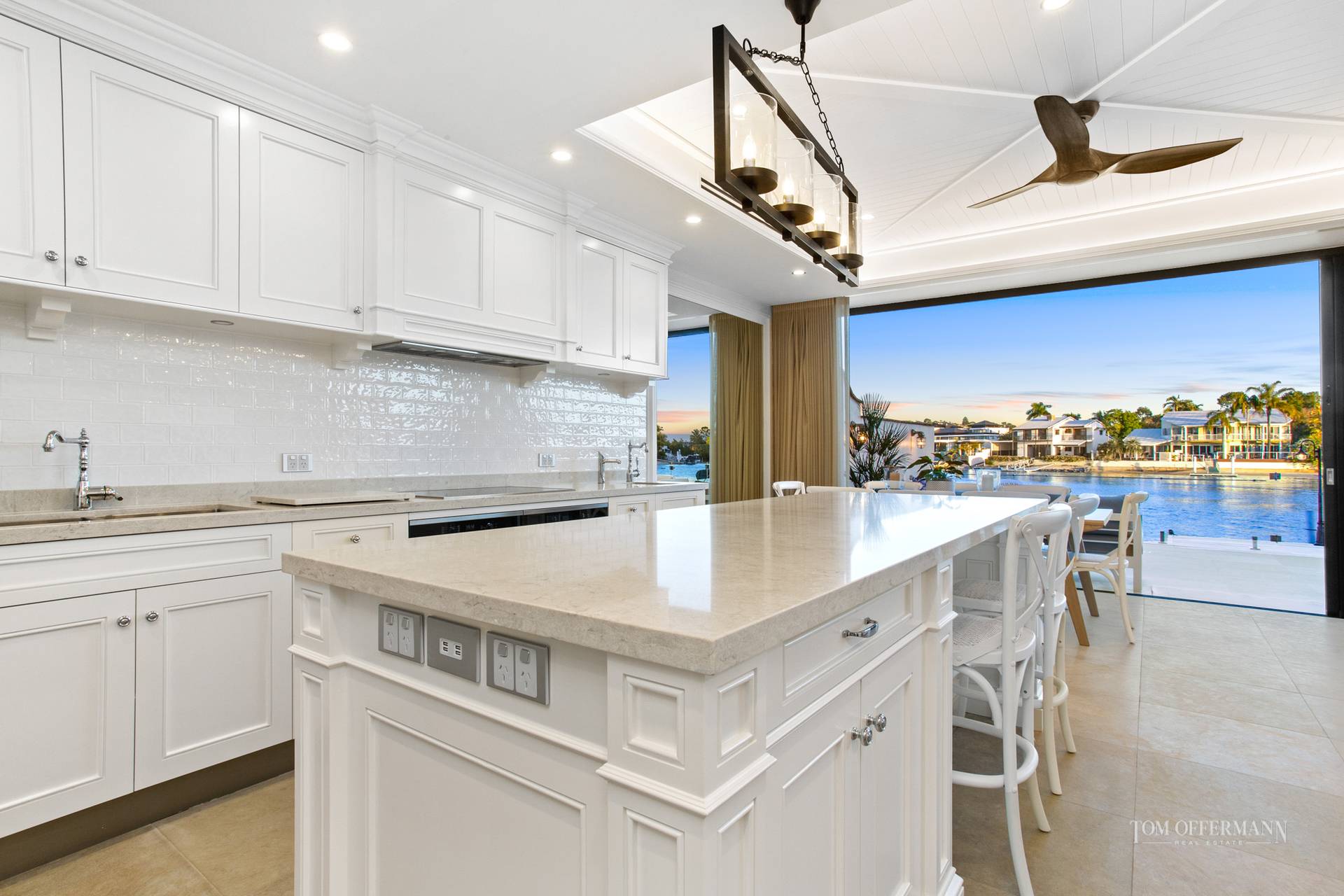 "This totally chic residence is relaxed, laidback and luxe," comments Tom Offermann Real Estate agent Jesse Stowers, "plus it's in a private gated location that's second-to-none. Stroll to nationally known restaurants such as Ricky's and Rock Salt or take a short boat ride to Hastings Street.