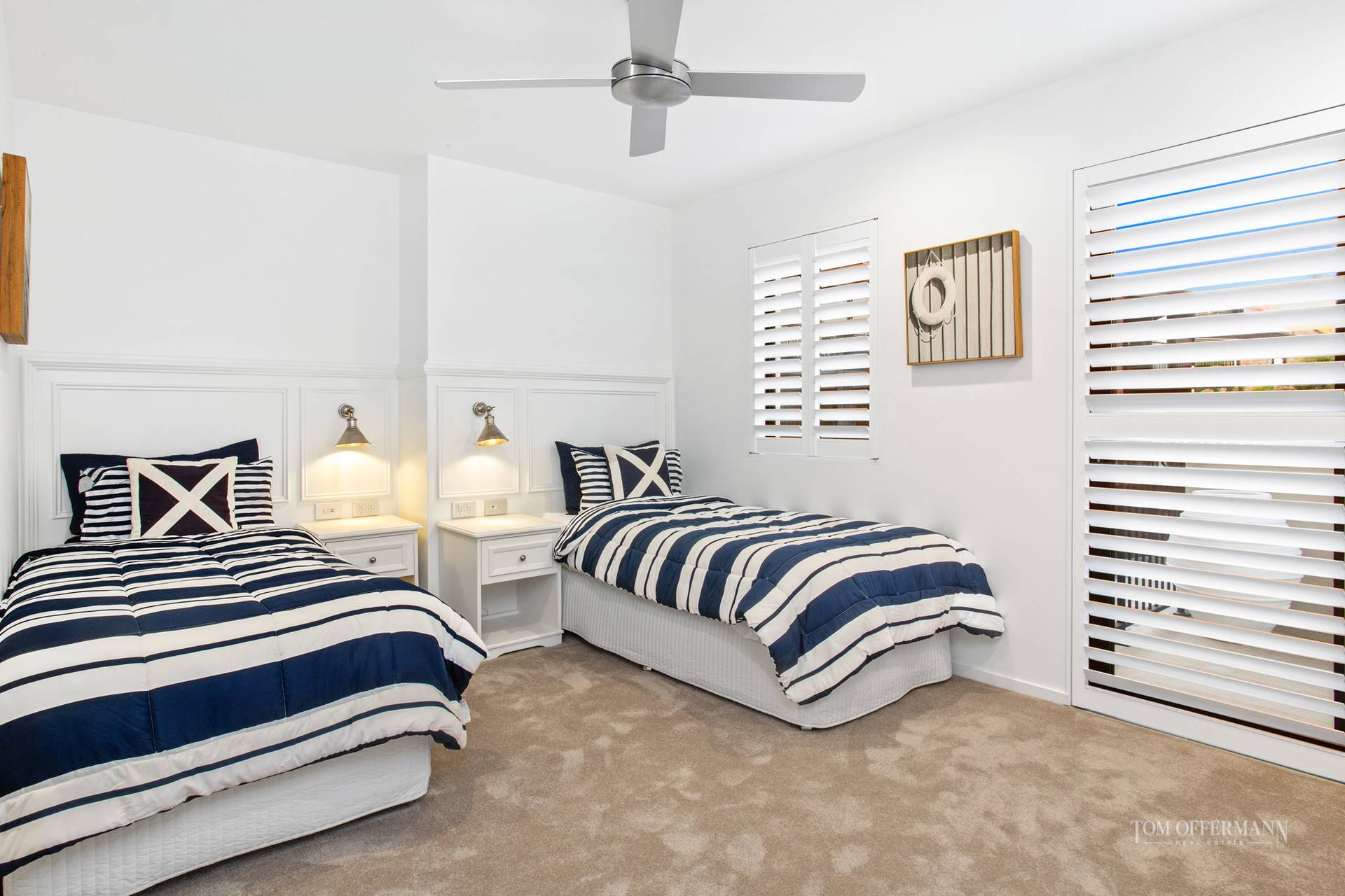 - About: Wyer + Craw premium custom cabinetry throughout incl Hampton's-style kitchen; VJ-profile coffered ceilings; plantation shutters; limestone flooring & wall tiles; recessed sliders; auto awning width of terrace.