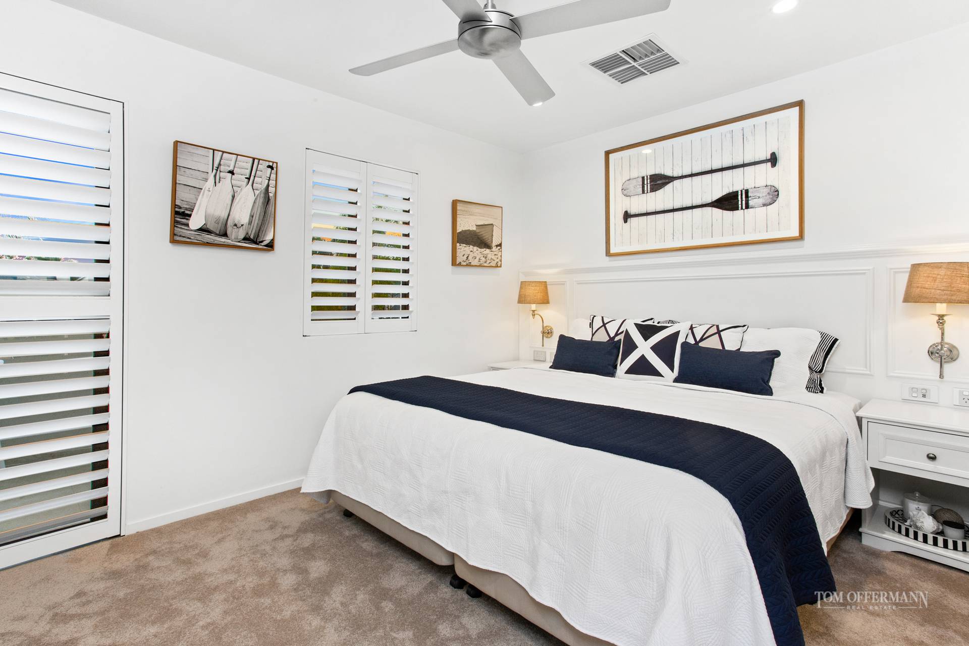 From the dream alfresco terrace, taking postcard position centre stage, in the glistening clear waterway, is an oversize jetty. It has a trailer boat launch facility, is the ideal possie for reeling in tailor and whiting, launching the kayak, and sundowners with friends is a shore thing.